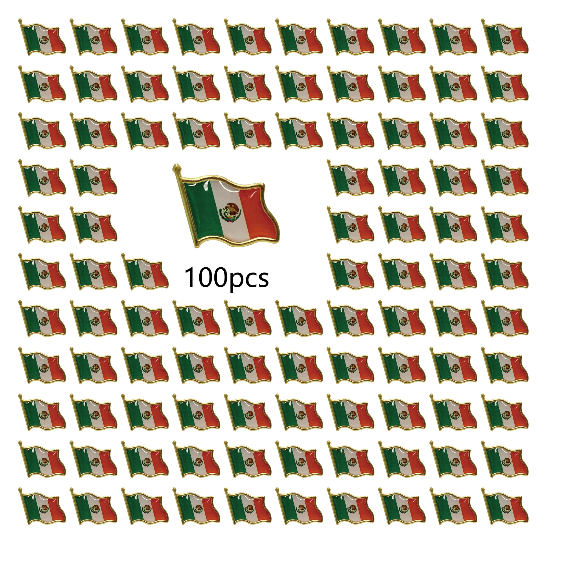 100 Pack Metal Mexico Flag Lapel Pin Waving Mexican Pins Souvenir Friendship Patriotic Brooches Bulk souvenir Series