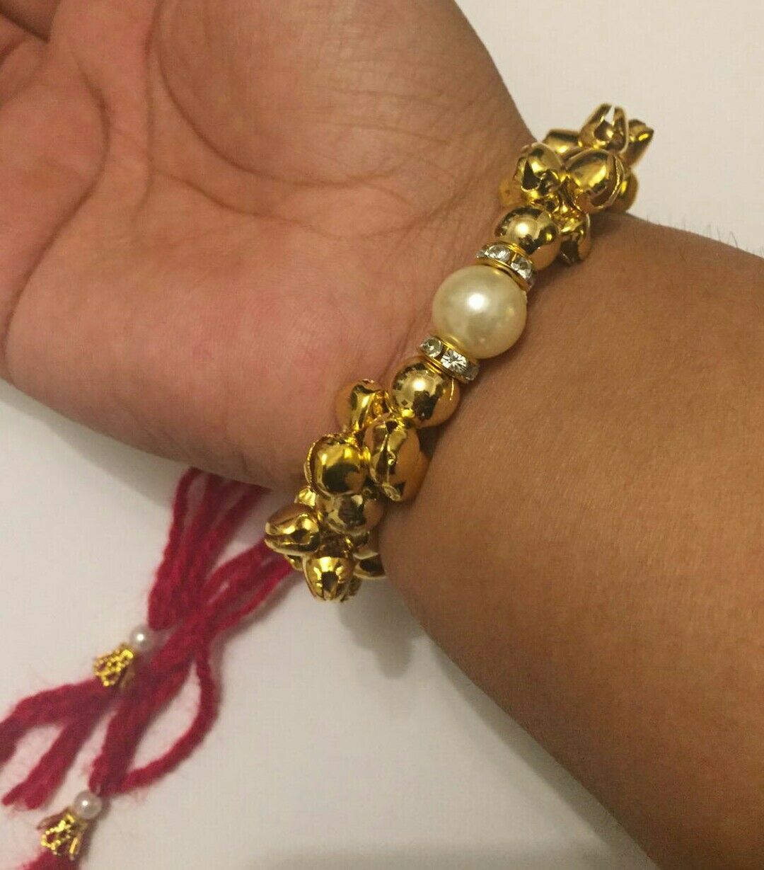 Good Luck Hindu Multi dangling bells Stunning Rhinestones Rings Bracelet Protection Amulet