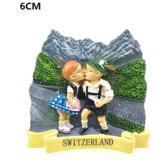 Switzerland Snow Mountain Lovers Squirrel Skiing 3D Fridge Magnets Tourism Souvenirs Refrigerator Magnetic Stickers Gift