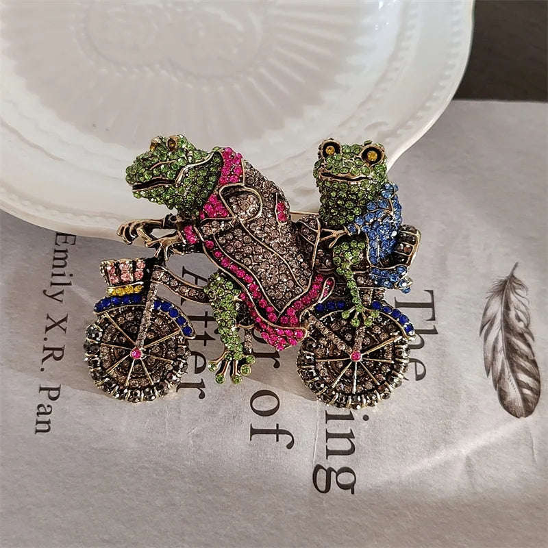 vintage jewelry retro heavy diamond frog prince bicycle brooch women accessories pin