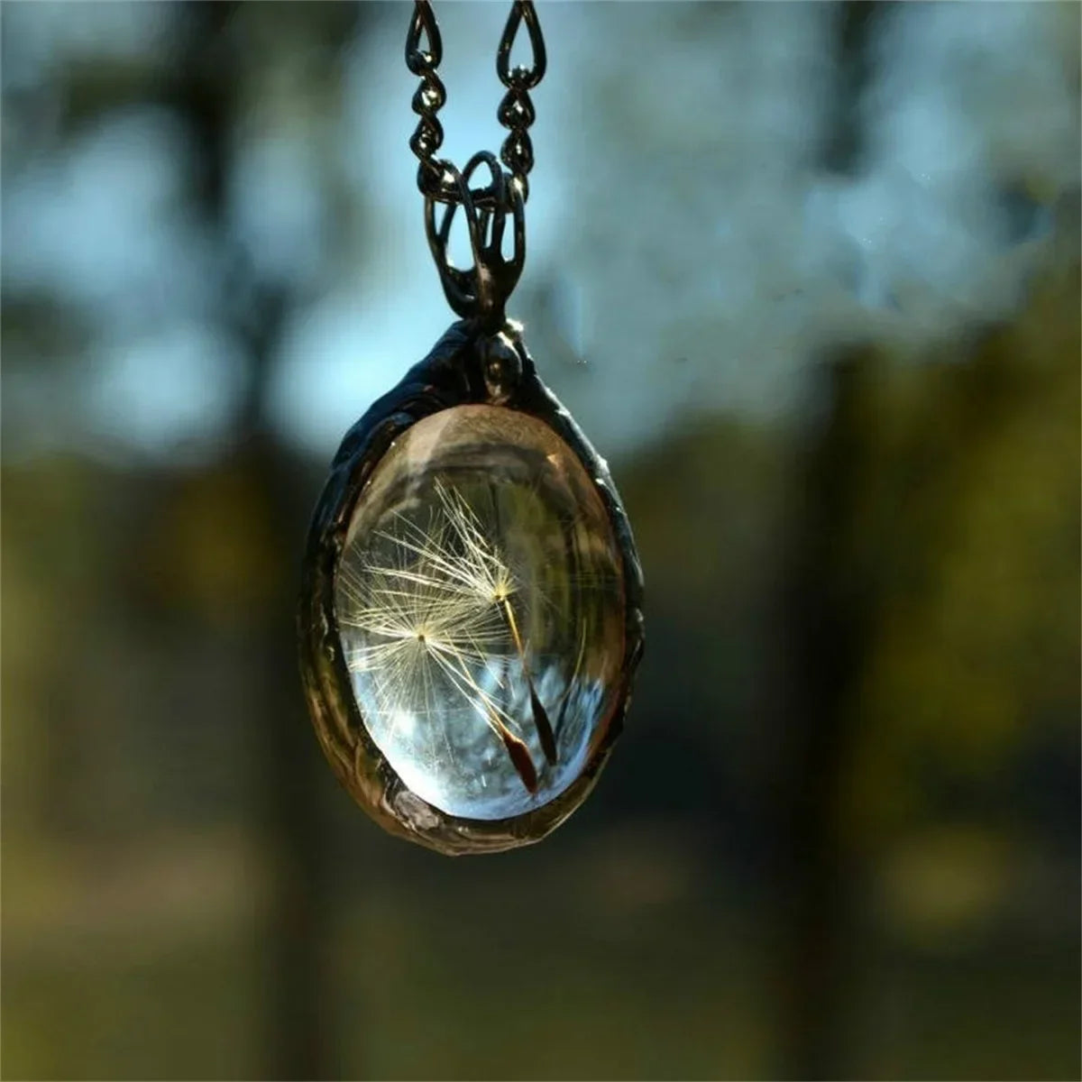 Подвеска На Шею Dandelion Dried Flower Pendant Necklace Charm Natural Dandelion Glass Ball Transparent Wish Glass Vial Jewelry