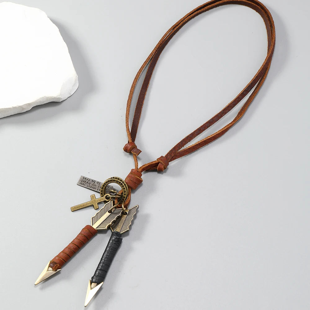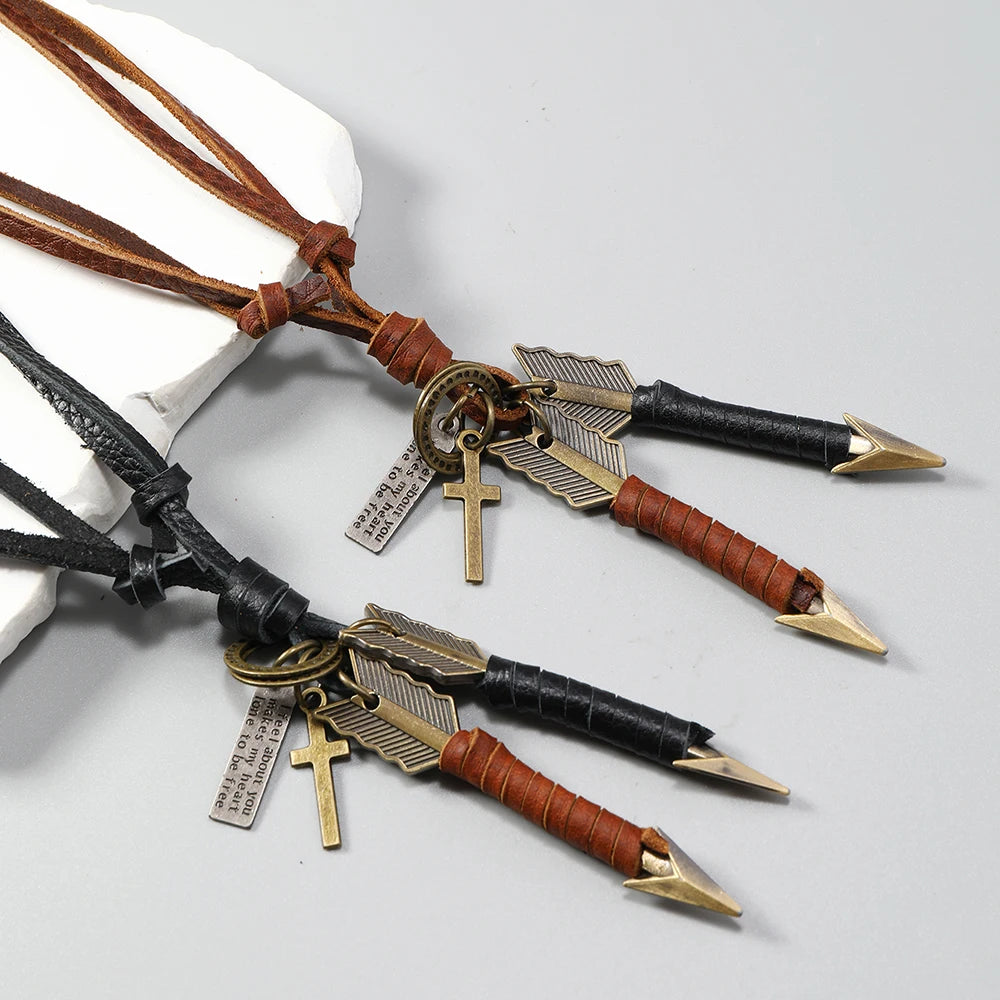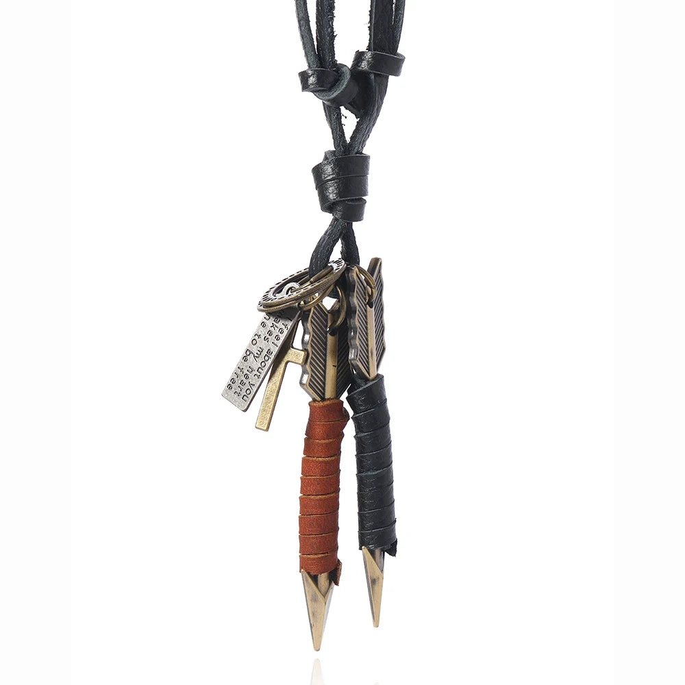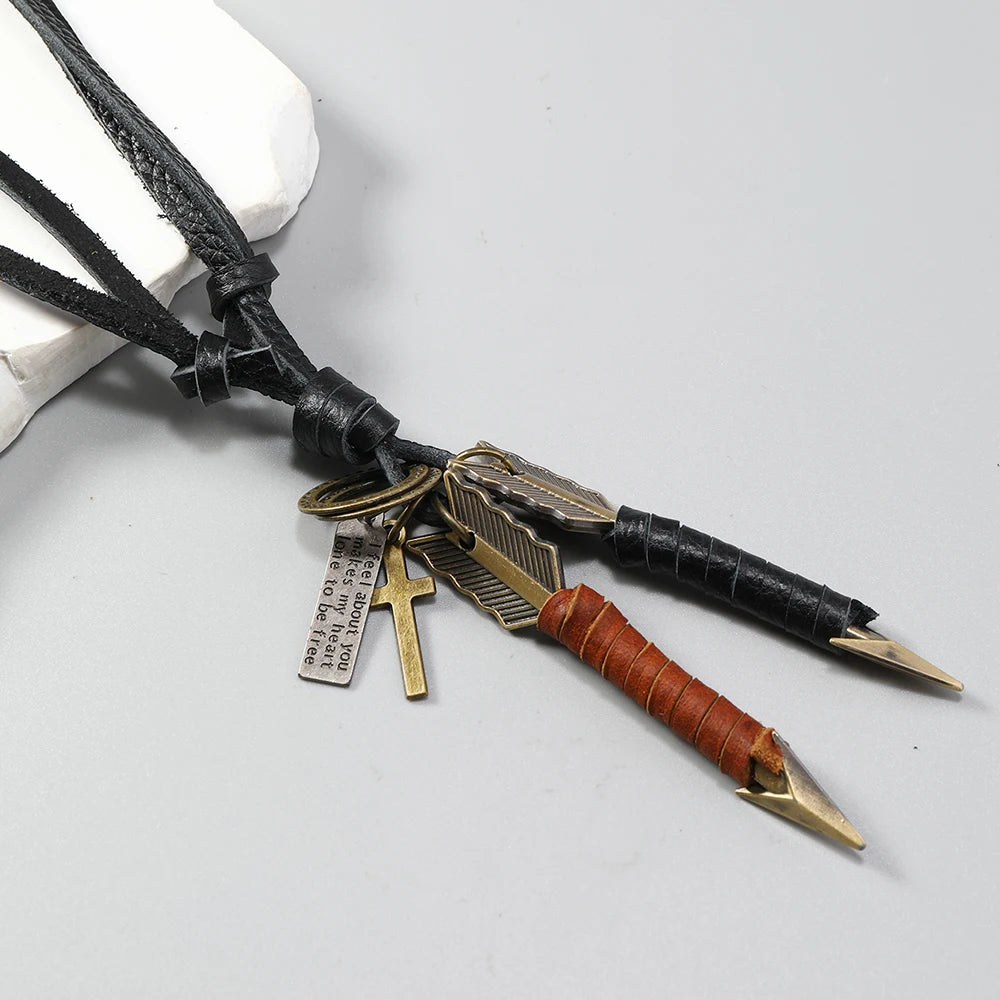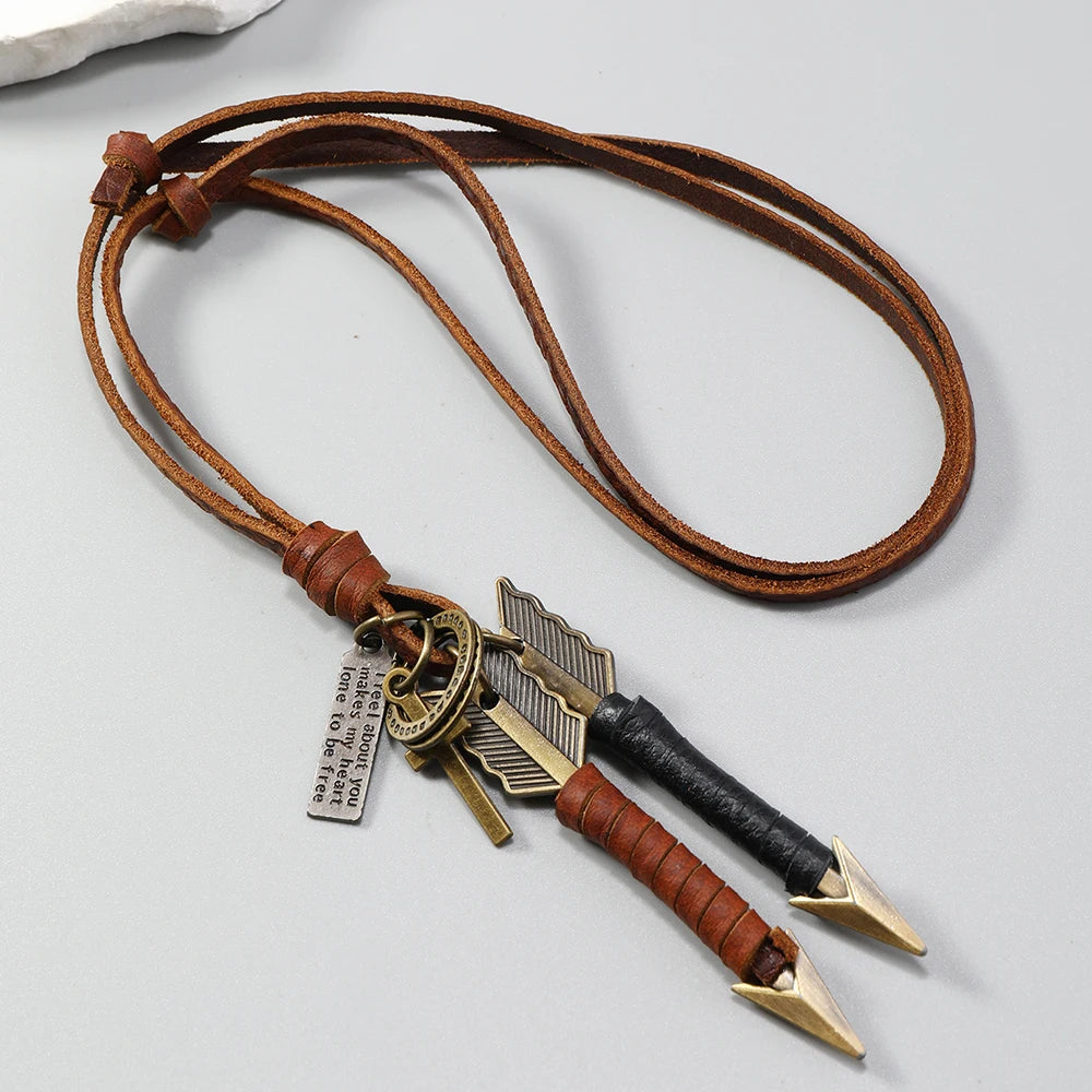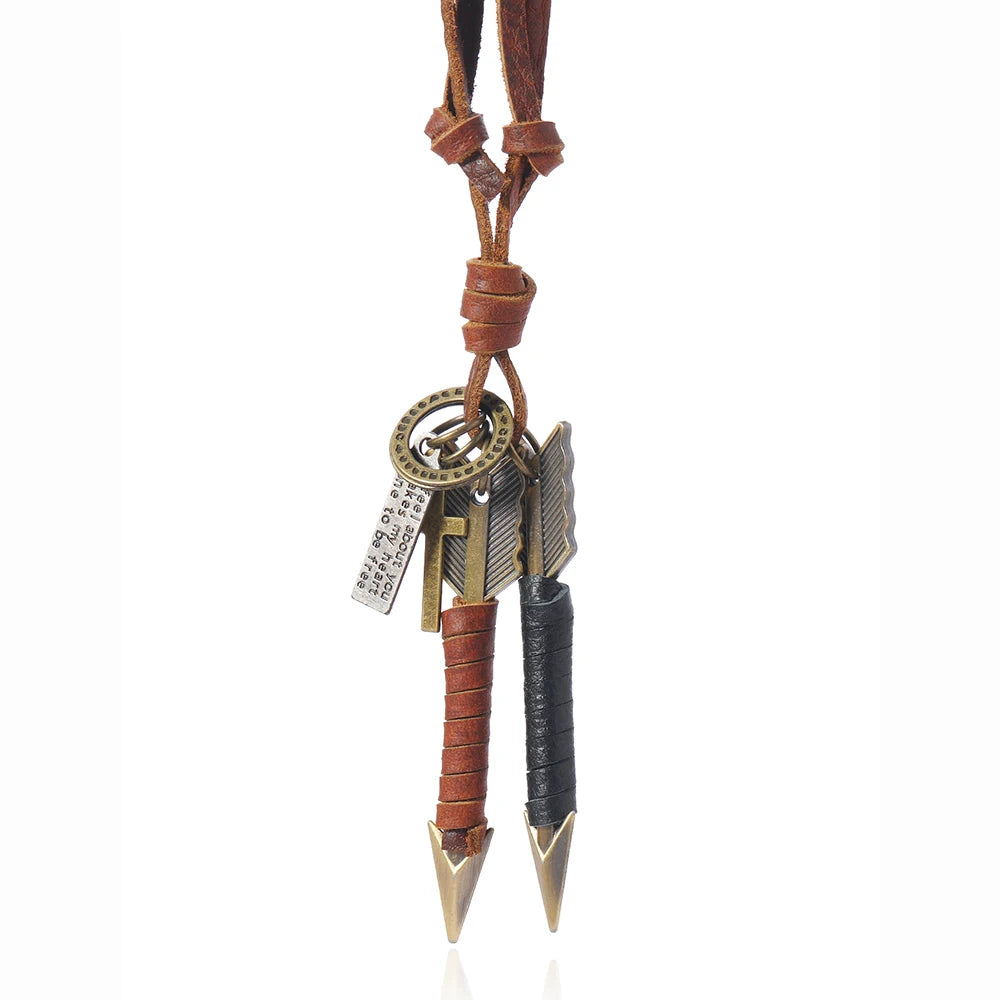 1 piece Handmade leather wrapped double arrow pendant necklace