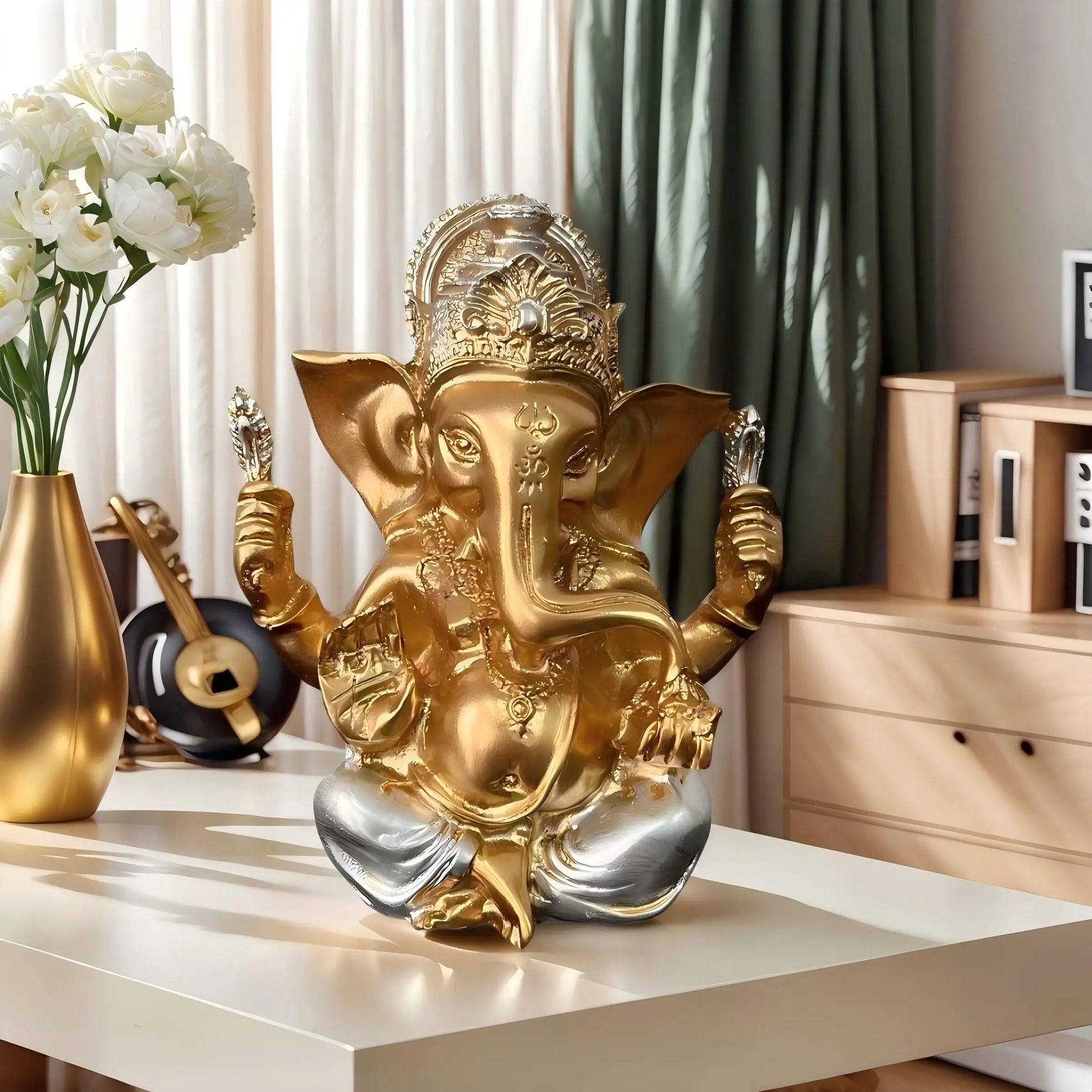 1 Piece of Exquisite Indian Elephant God Jialash Golden Statue Ornaments, Praying for Blessings and Auspicious Home Goodies, Unified Indian Art Style Decoration