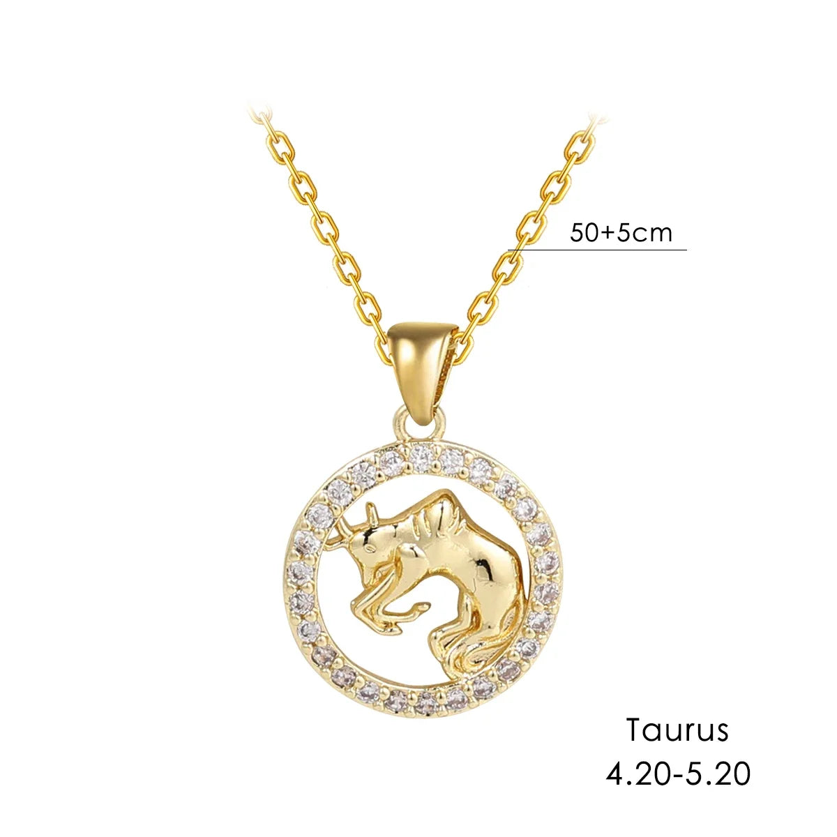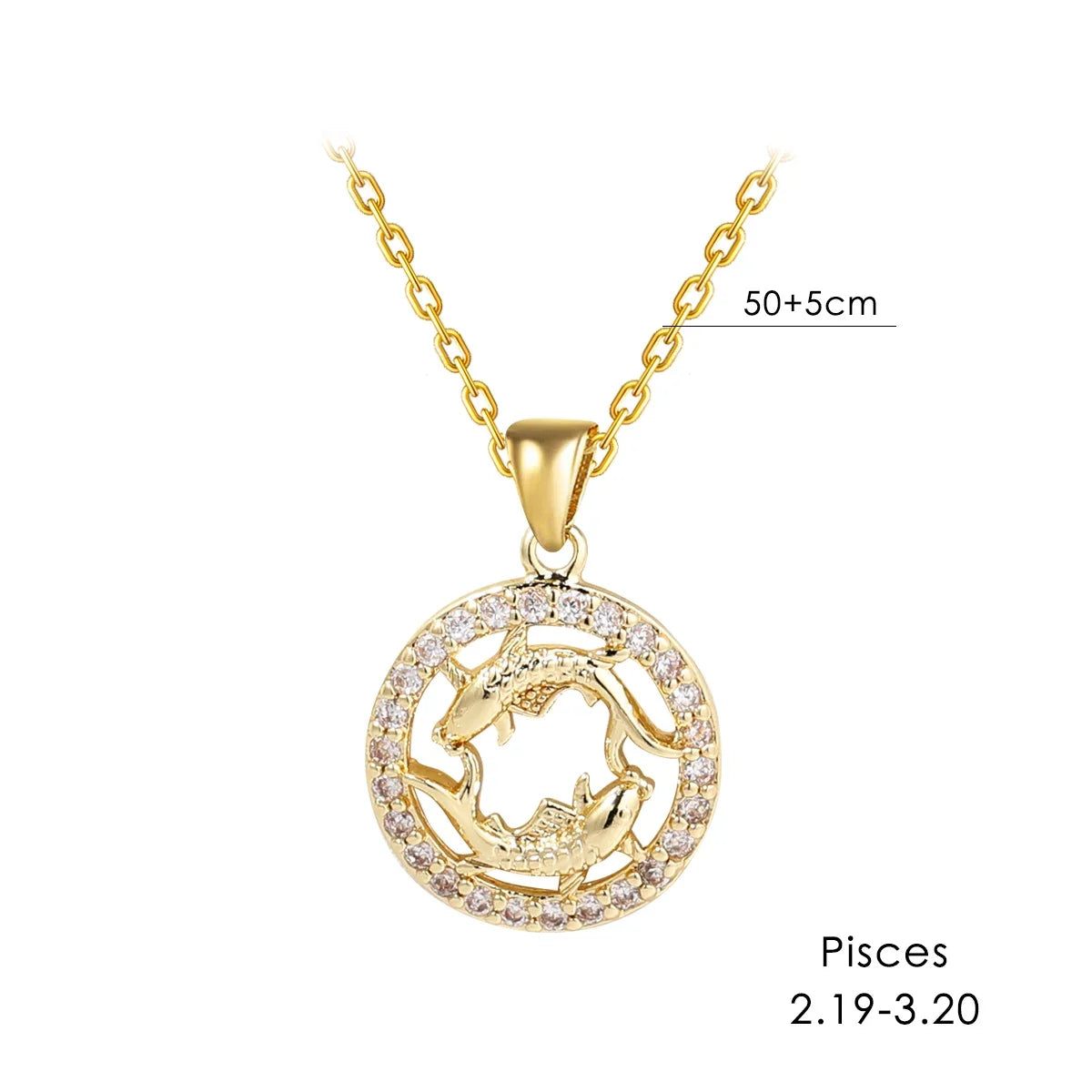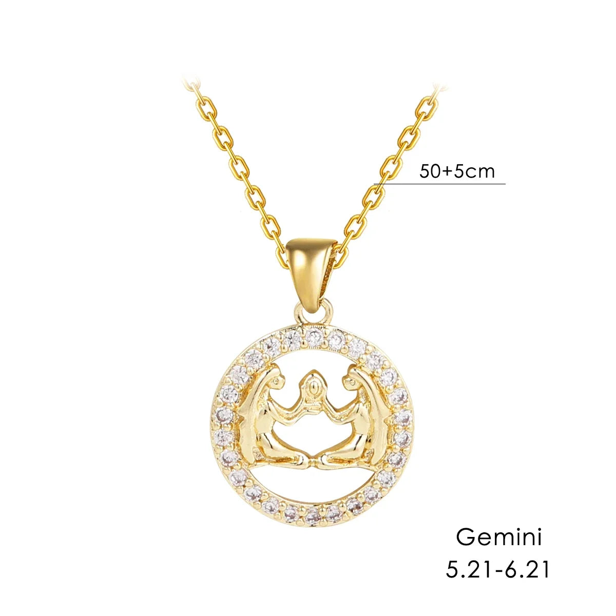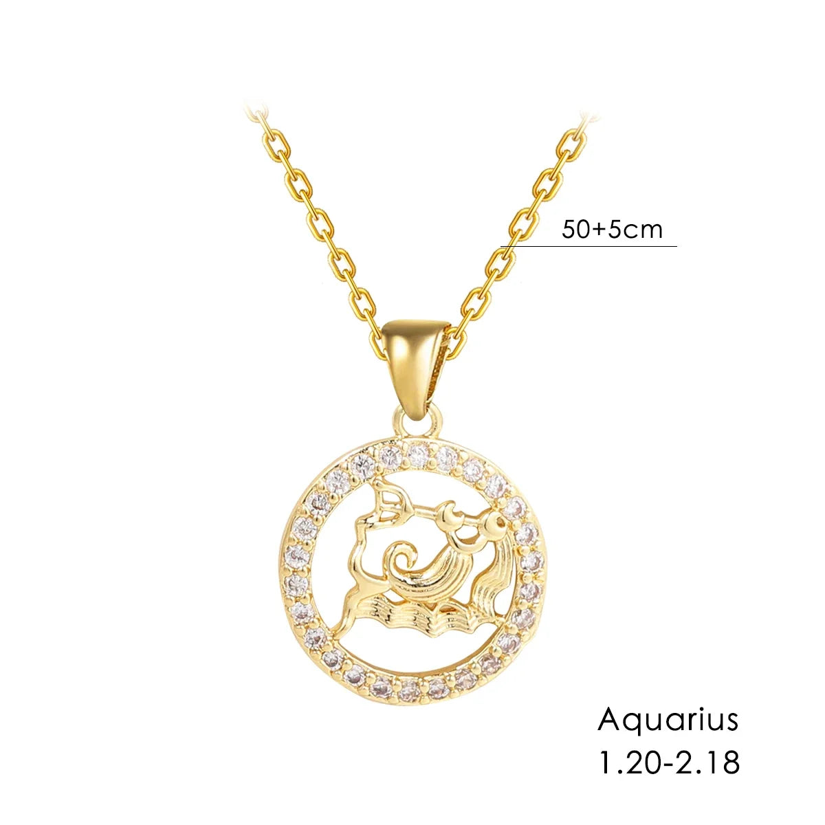 12 Zodiac Signs Necklace Copper Gold Plated Zodiac Signs Pendant Chain Ladies Necklace Birthday Jewelry Ladies Jewelry