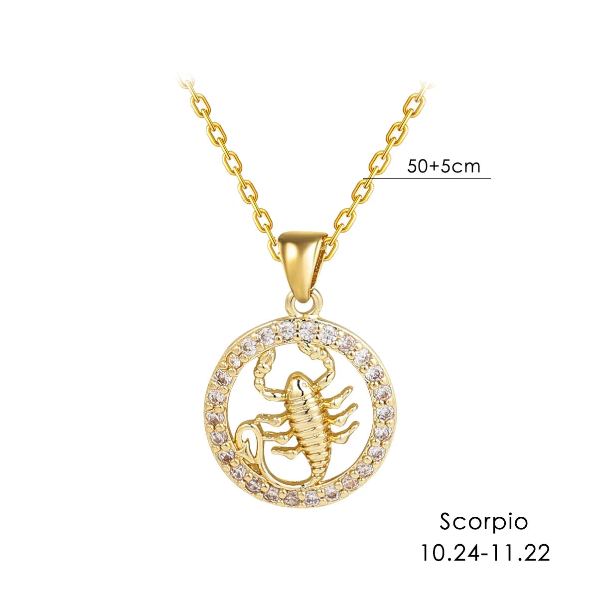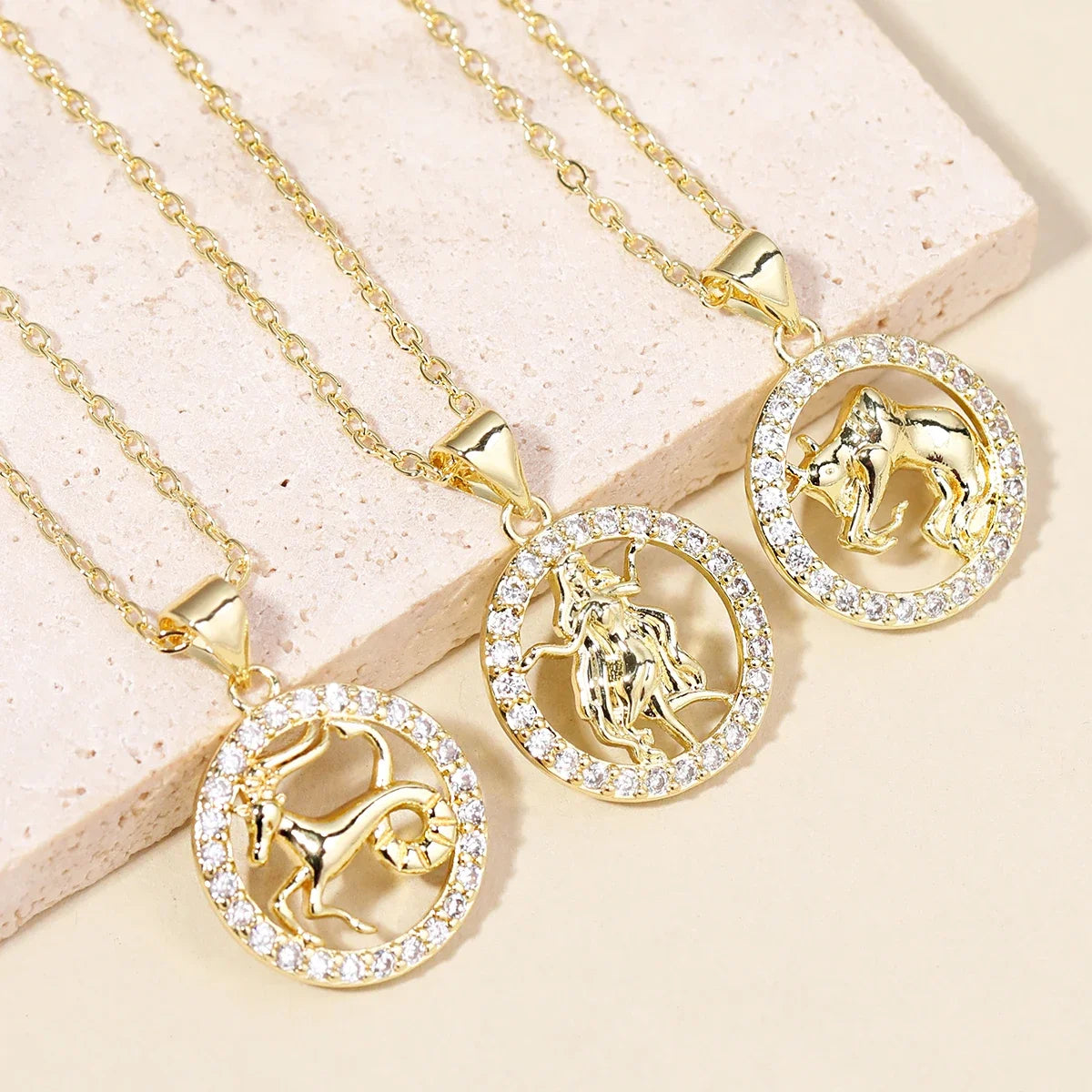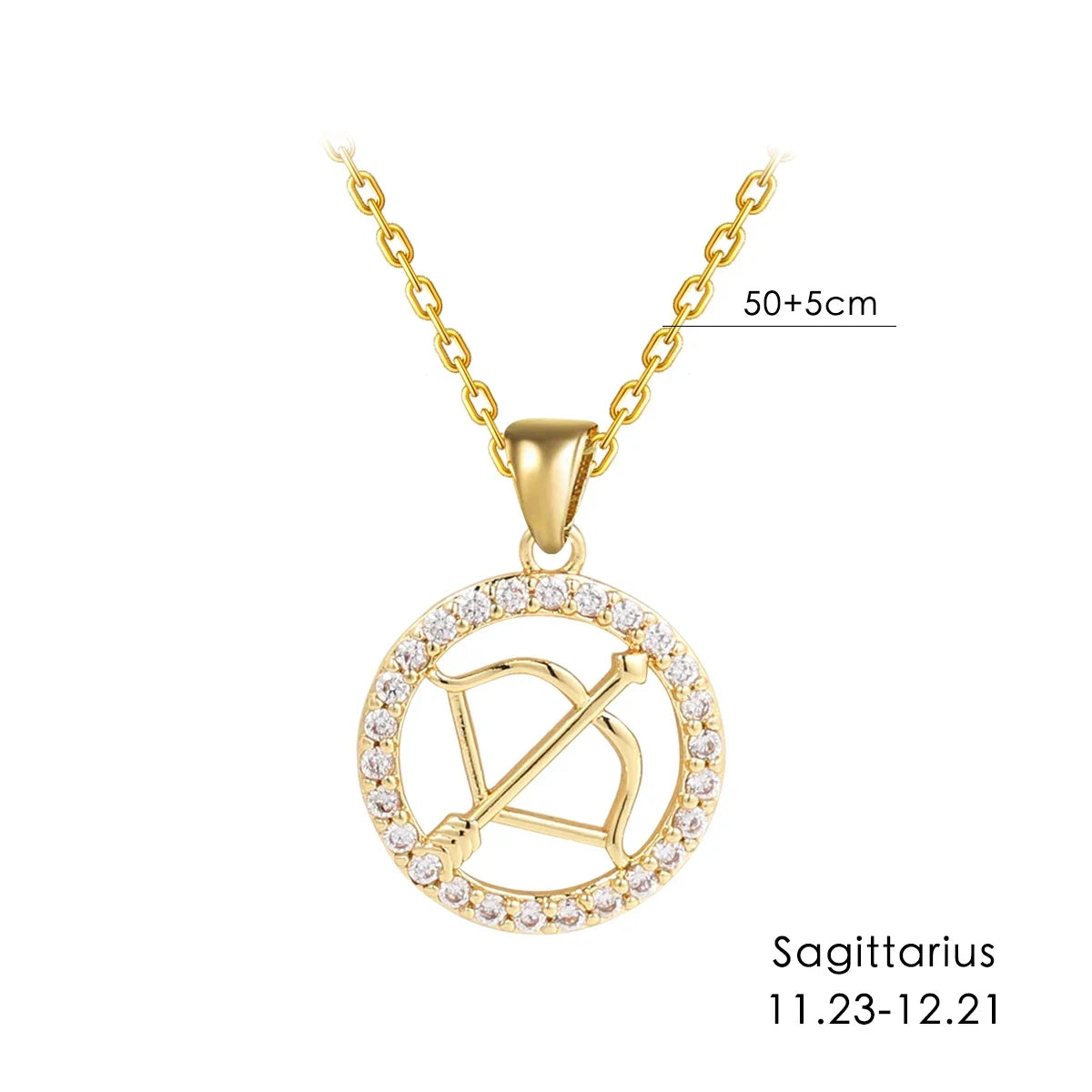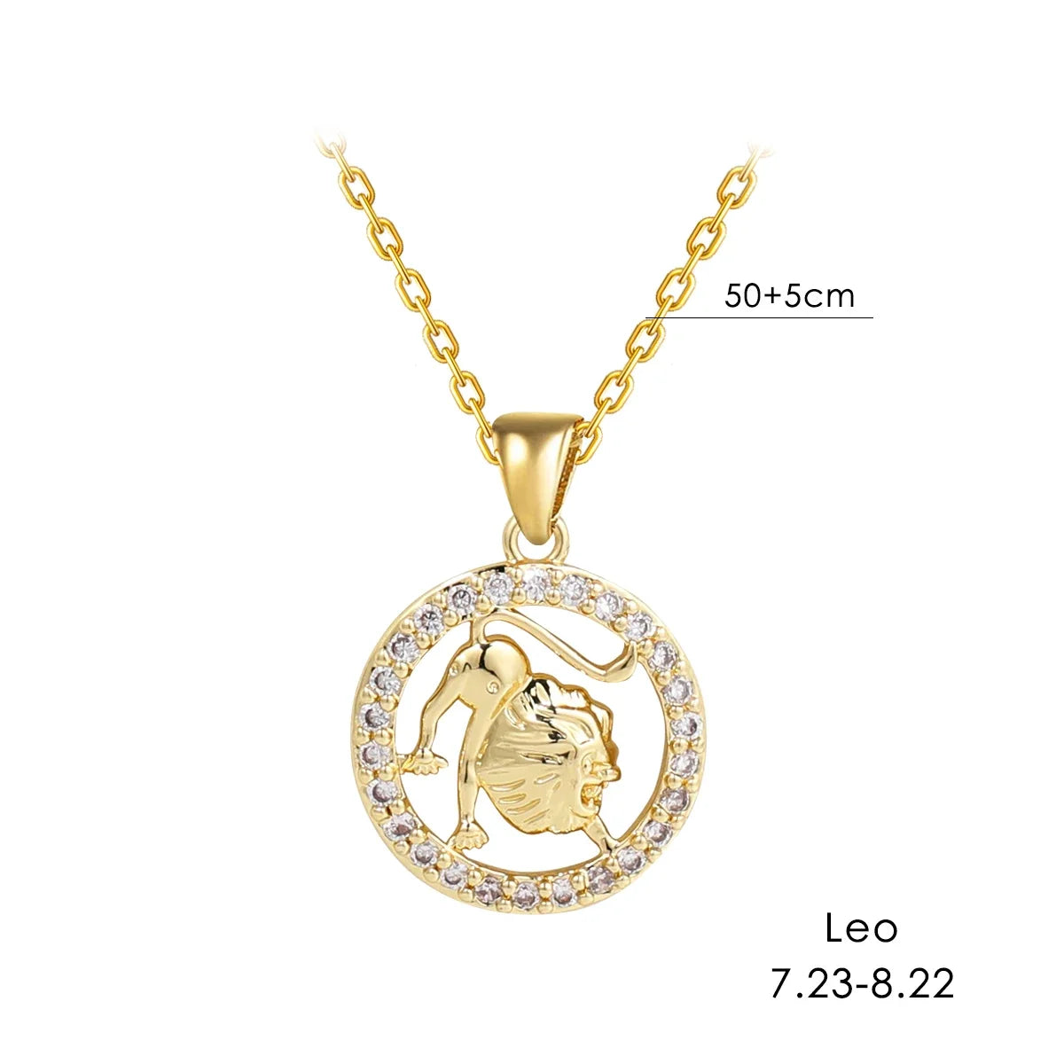 12 Zodiac Signs Necklace Copper Gold Plated Zodiac Signs Pendant Chain Ladies Necklace Birthday Jewelry Ladies Jewelry