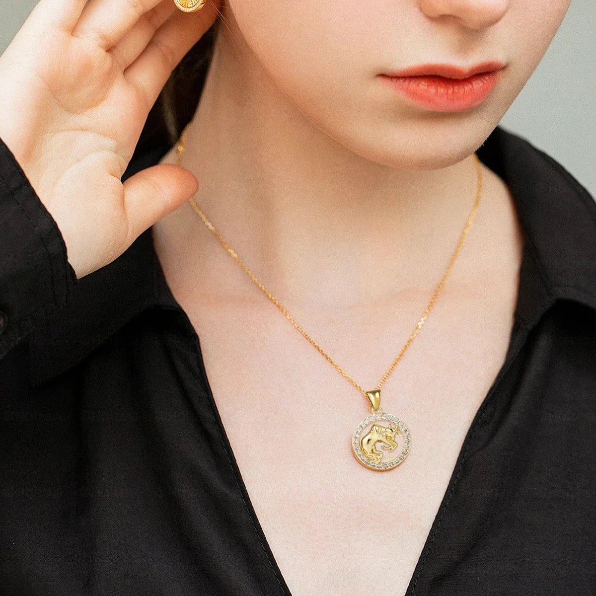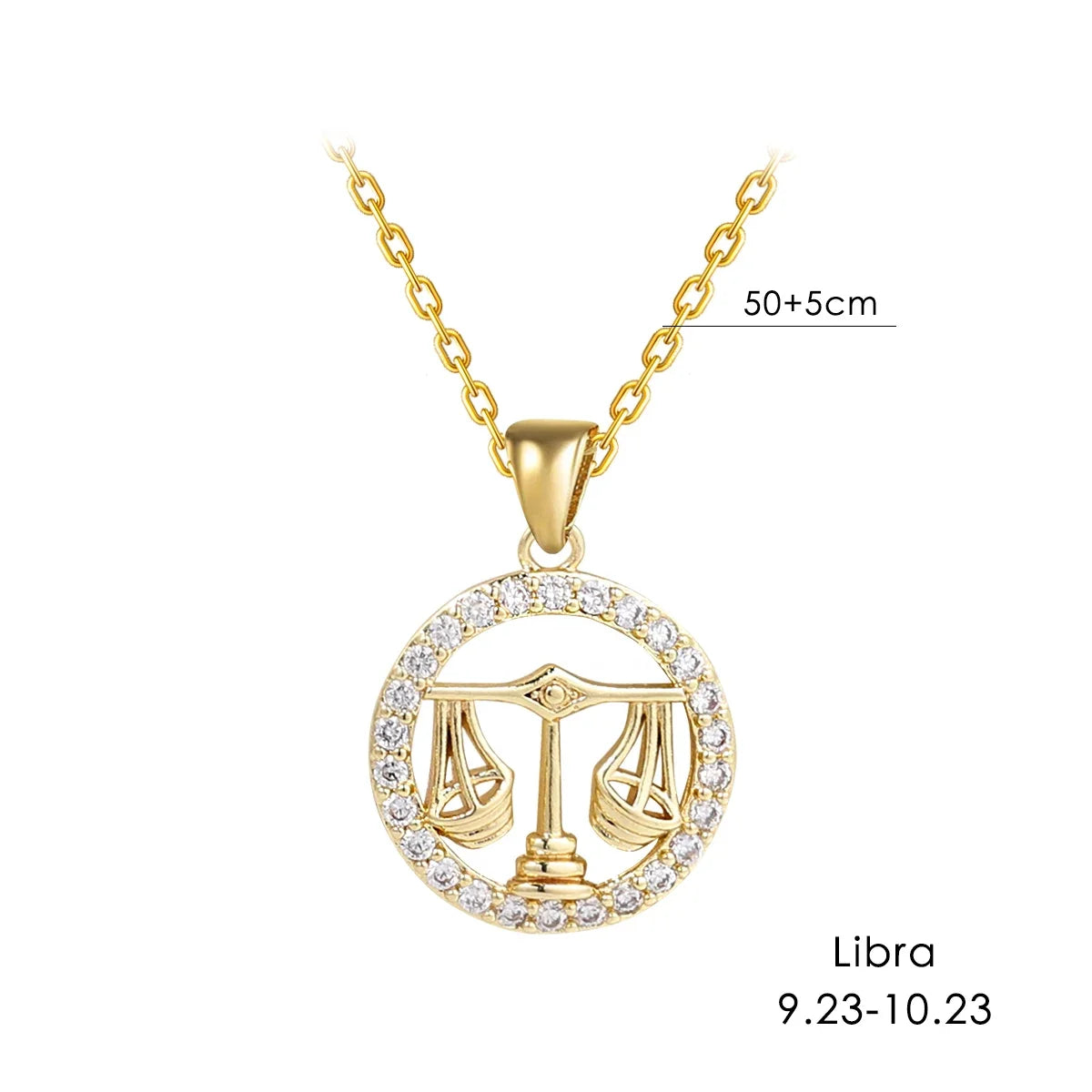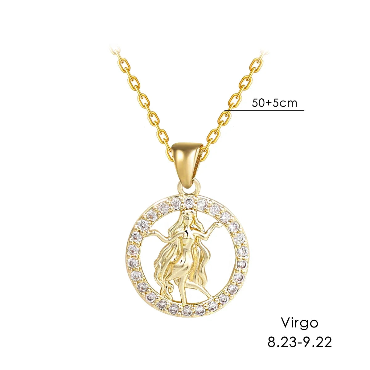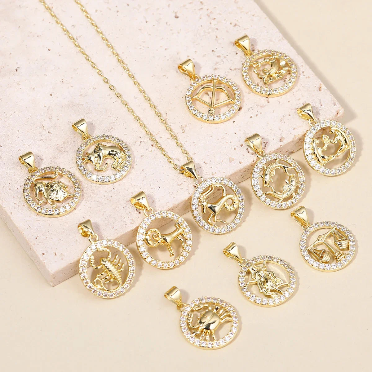 12 Zodiac Signs Necklace Copper Gold Plated Zodiac Signs Pendant Chain Ladies Necklace Birthday Jewelry Ladies Jewelry