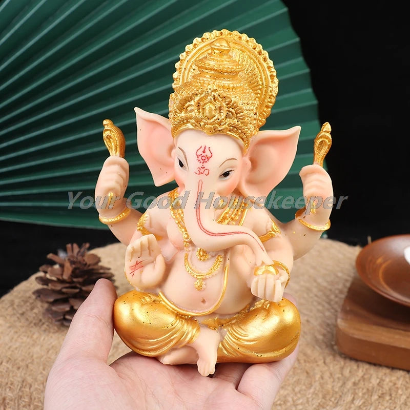 1Pc Gold Lord Ganesha Buddha Statue Elephant God Sculptures Ganesh Figurines Home Furnishing Decoration Ornaments Resin Figurine