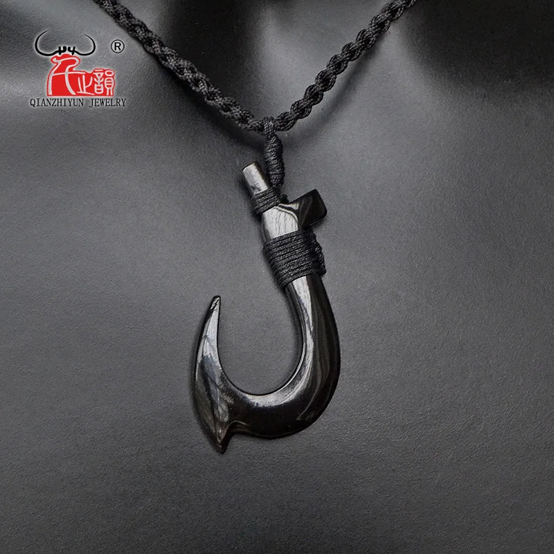 1PC Hawaii Surfer Jewelry Handmade Carved buffalo horn Fish Hook Pendant New Zealand Maori Tribal Choker WoMen's Men's Necklace