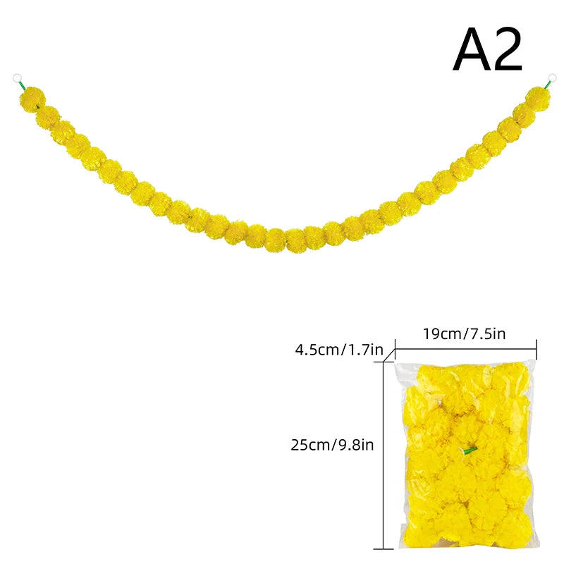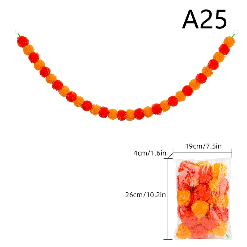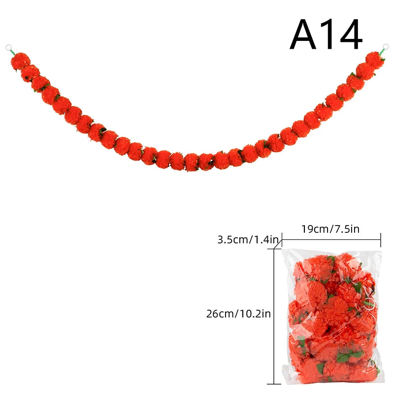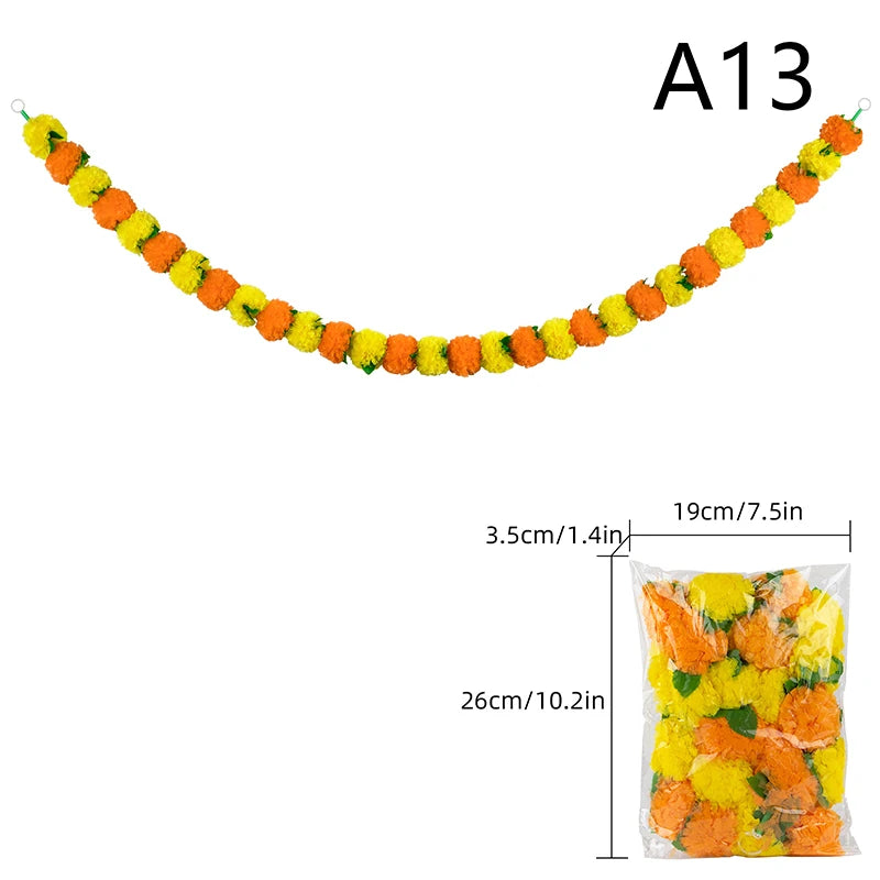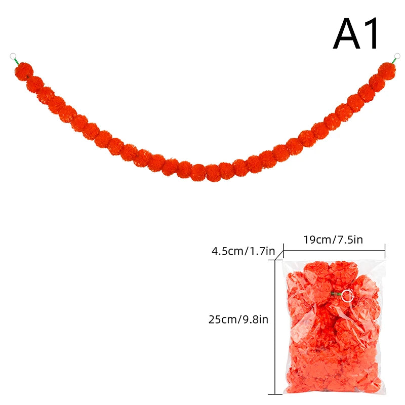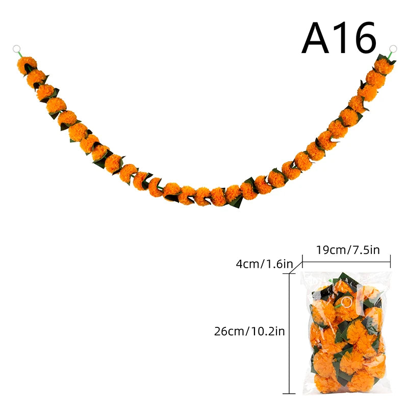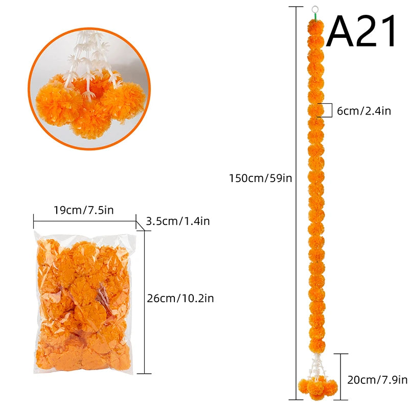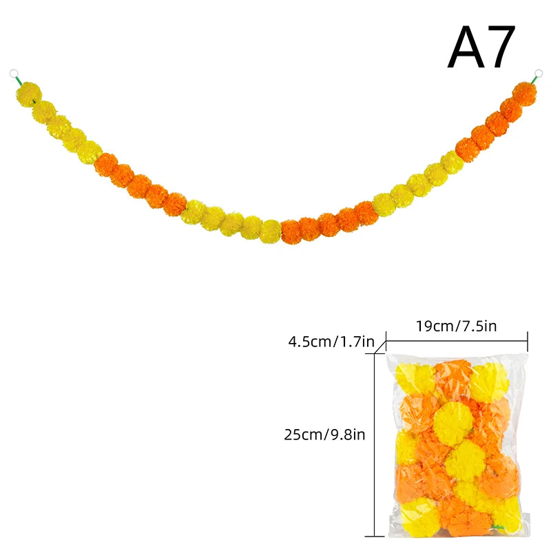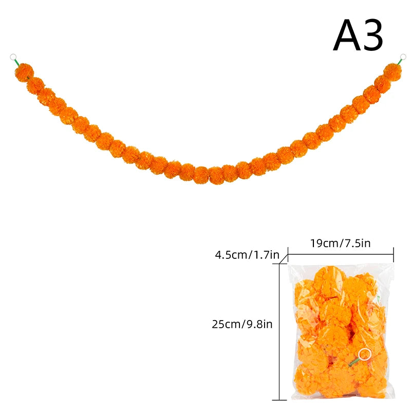 1Pc Indian Style Marigold Flower Garland With Flowers For Day Of The Dead Diwali Home DIY Craft Party Halloween Party Decor