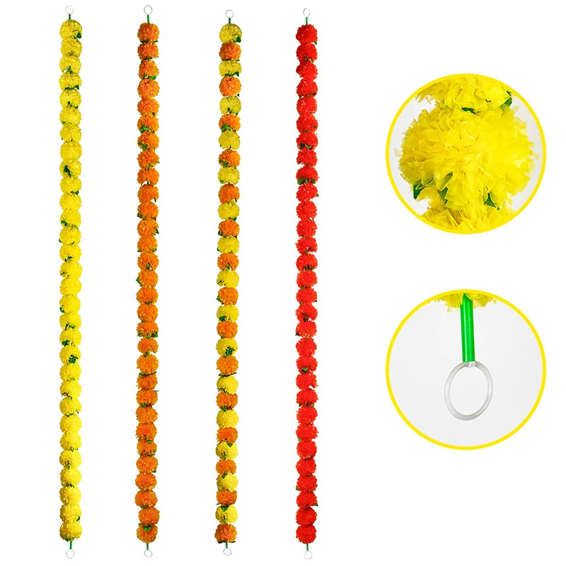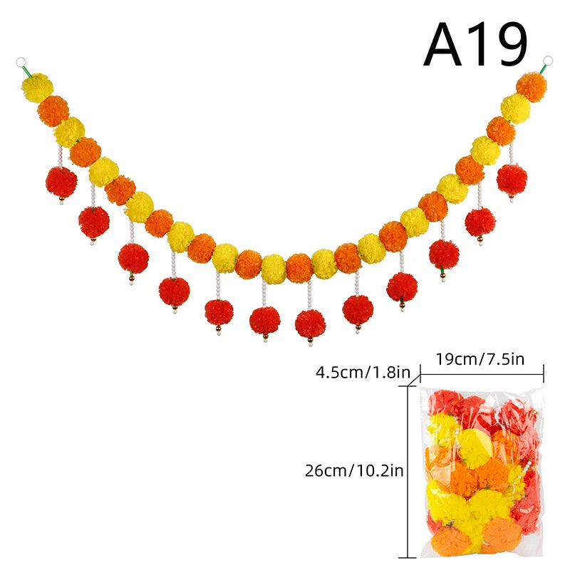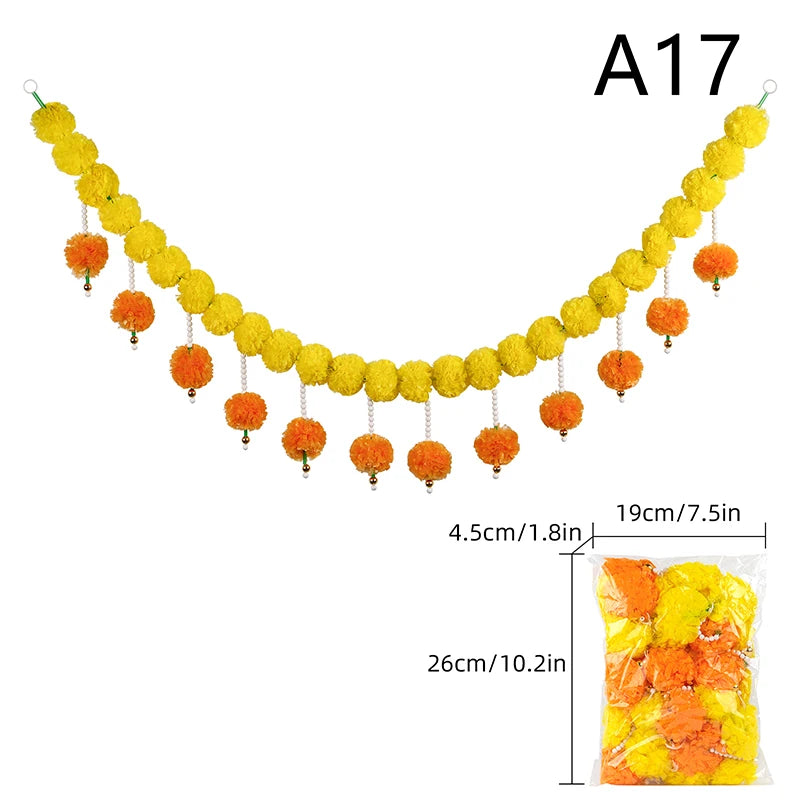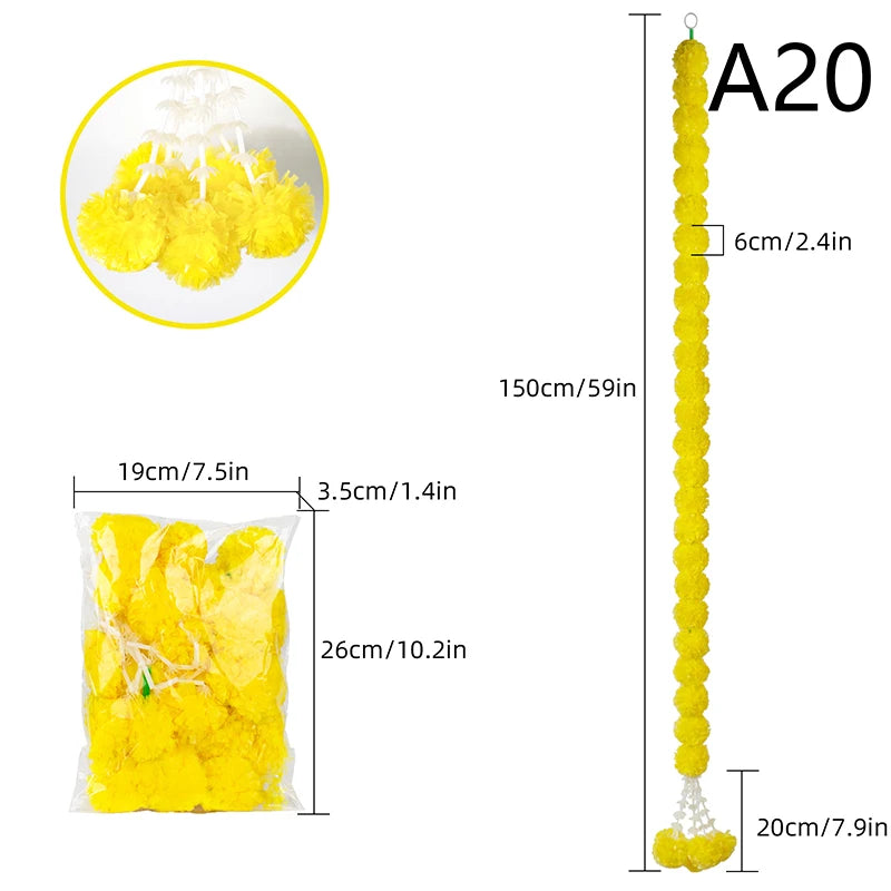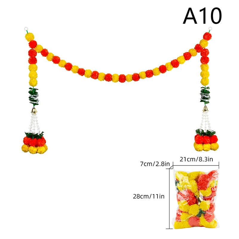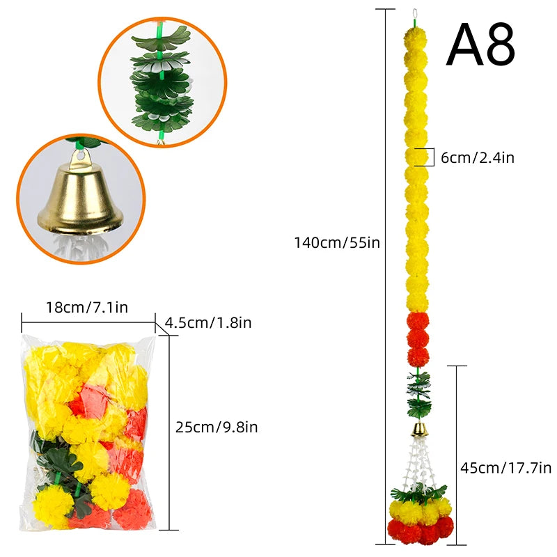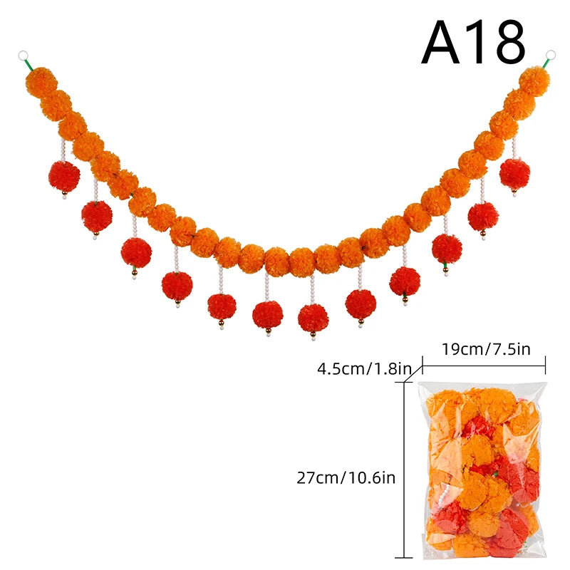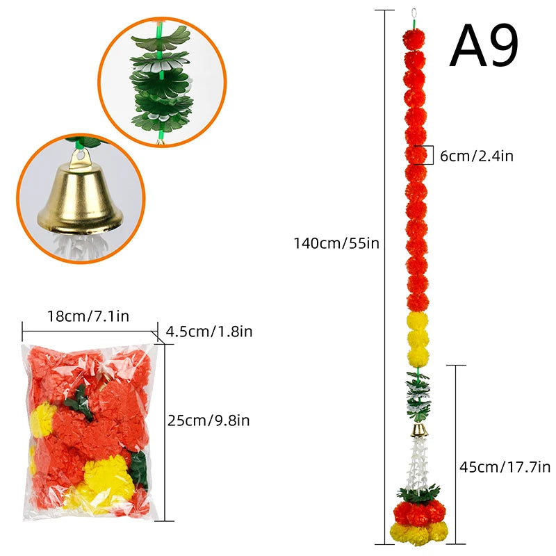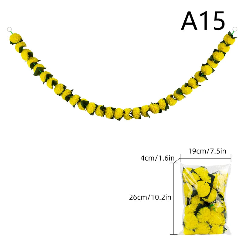 1Pc Indian Style Marigold Flower Garland With Flowers For Day Of The Dead Diwali Home DIY Craft Party Halloween Party Decor