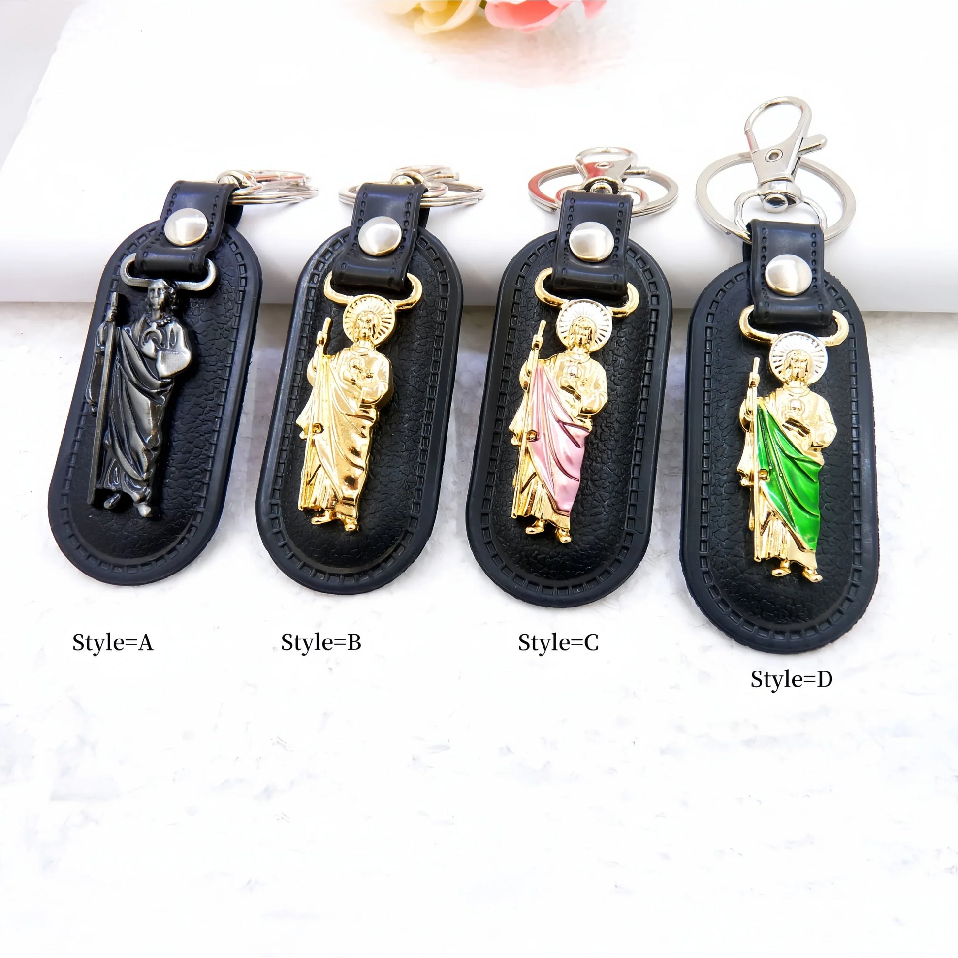 1pc Metal PU Leather St. Jude Pendant Keyring Keychain Religious Ornament