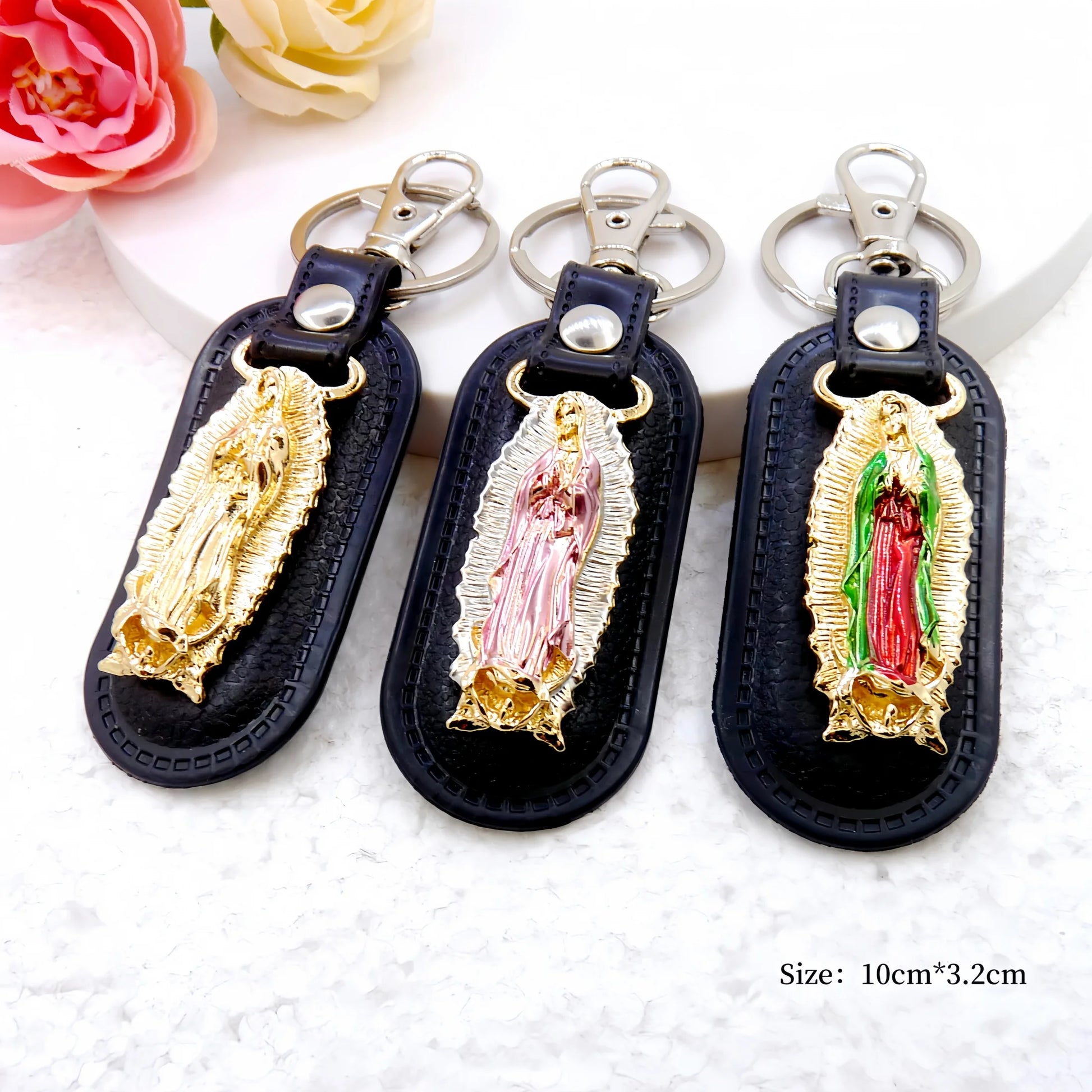 1pc Metal PU Leather Virgin Maria Mama Pendant Keyring Keychain Religious Ornament