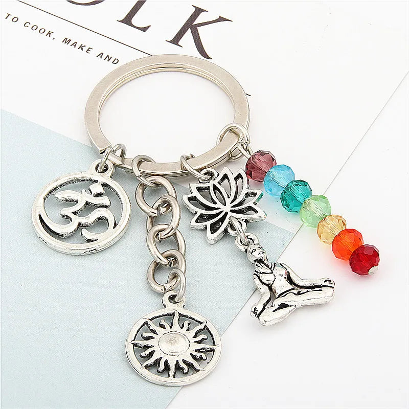 1pc Rainbow Symbol Keyring Silver Color Keychain Yoga Chakra Key Chains Sun Charms Lotus Ohm Jewelry E1652