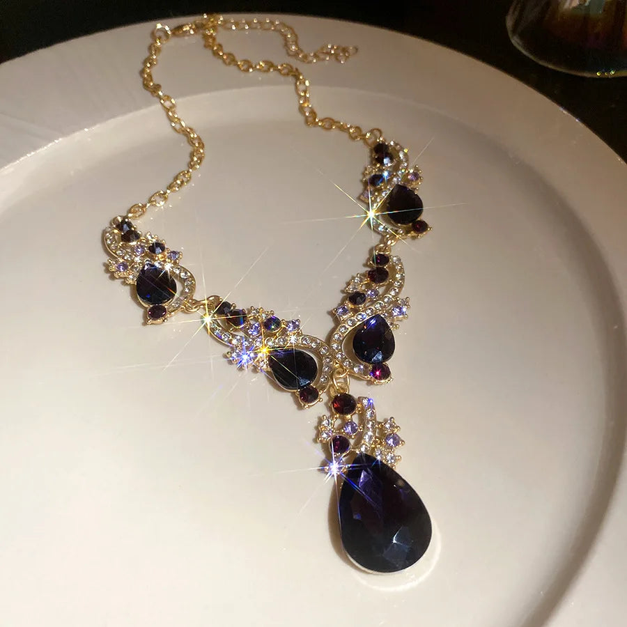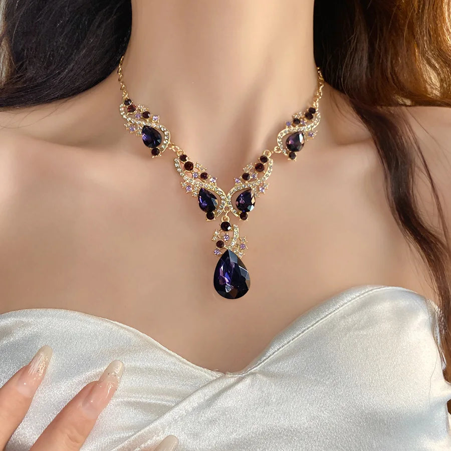 2 Pcs Inlaid Rhinestone Water Drop Necklace Earring Jewelry Sets for Women 2025 Hot Sale Personalized Wedding Bride Accessories
