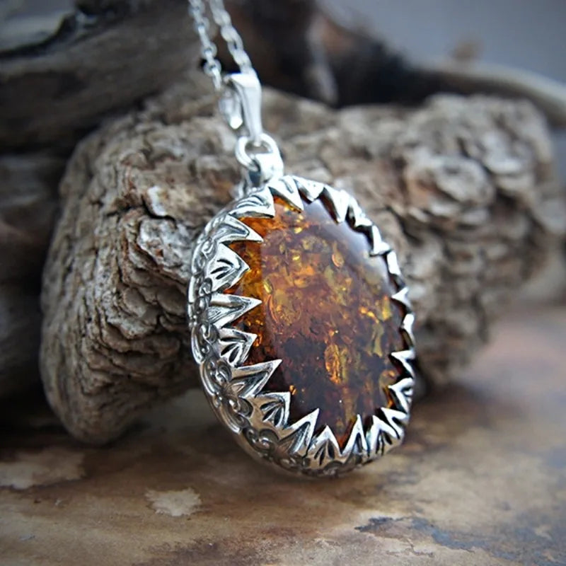 2023 New Vintage Champagne Oval Crystal Pendant Necklace for Women Fashion Elegant Bride Wedding Engagement Jewelry Party Gifts