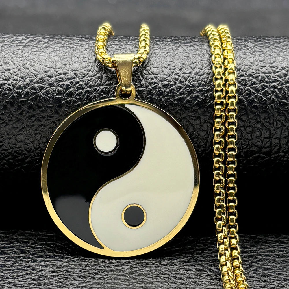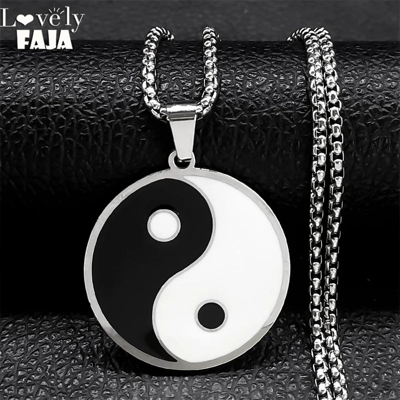 - 2024 Fashion Yin and Yang Gossip Taiji Stainless Steel Necklaces for Women/Men Statement Necklace Jewelry bisuteria