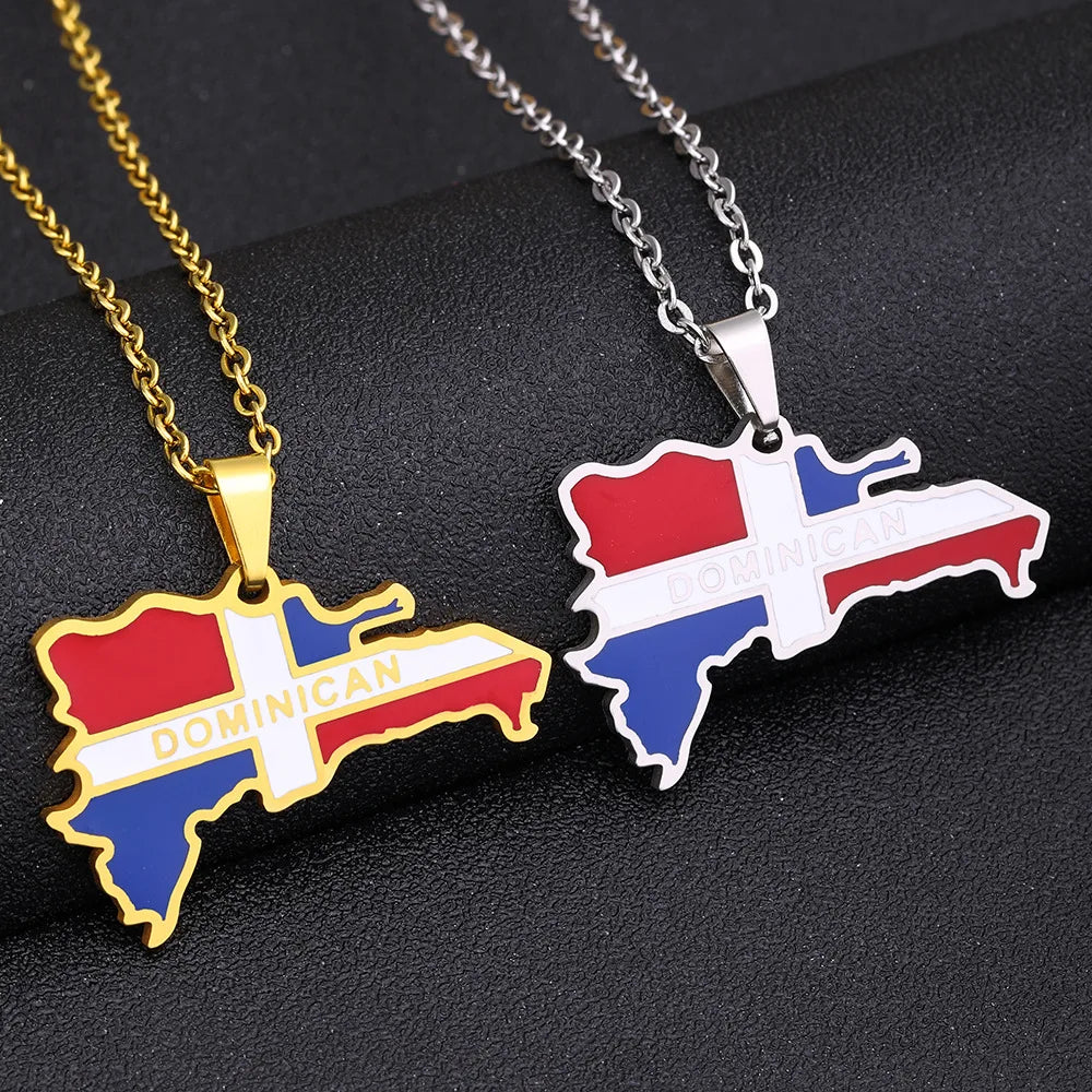 2024 New fashion Dominican map Titanium steel pendant necklace men and women's stainless steel couple necklace