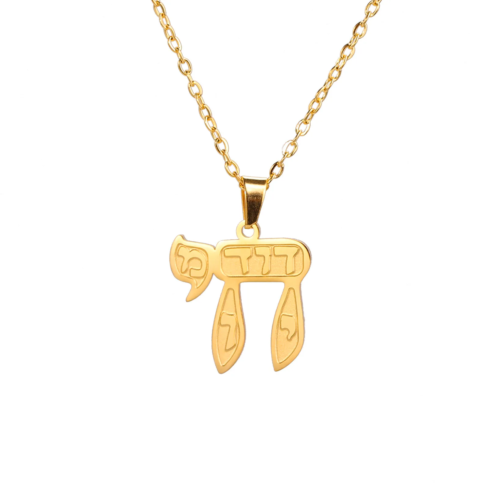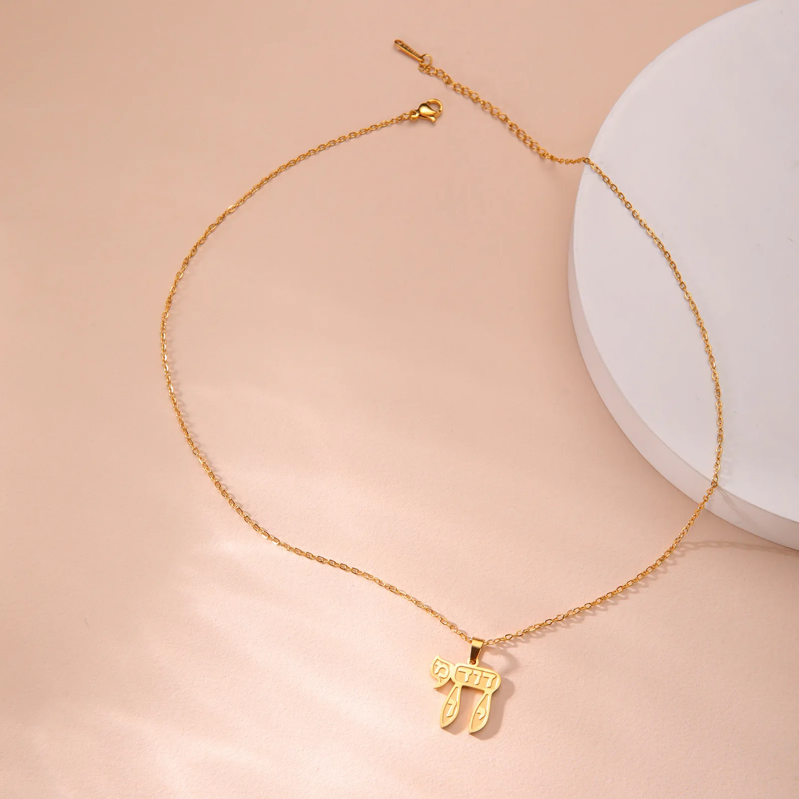 2024 New fashion Hebrew letters mother pendant necklace temperament everything with stainless steel clavicle chain accessories a
