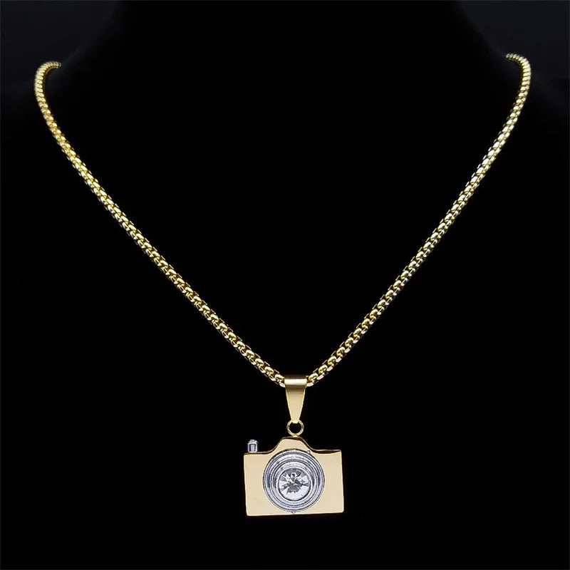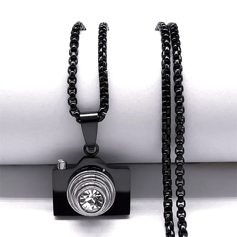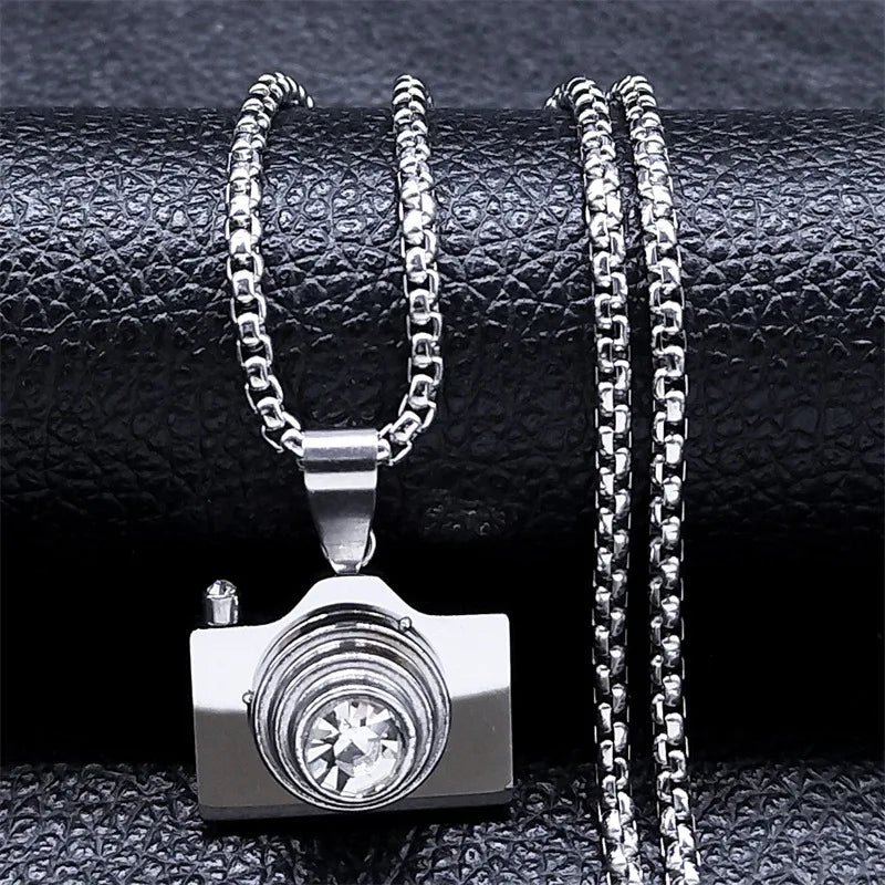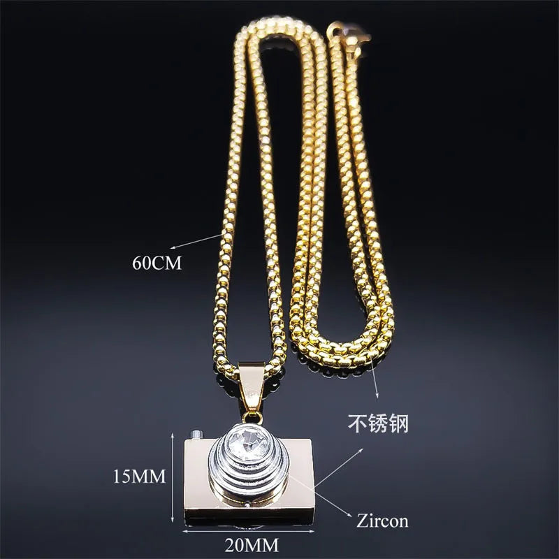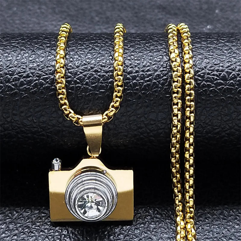 2024 new fashion simple camera rhinestone pendant necklace temperament all men and women collarbone chain accessories