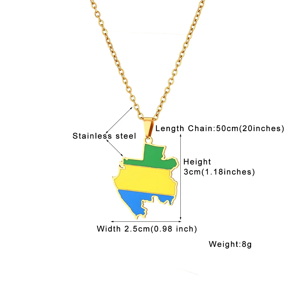 2024 new fashion stainless Gabon map flag pendant necklace temperament everything collarbone chain birthday anniversary gift