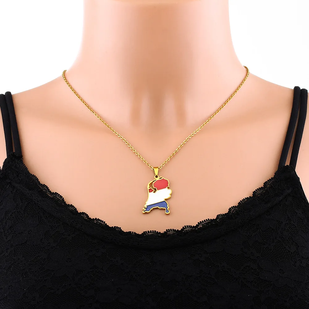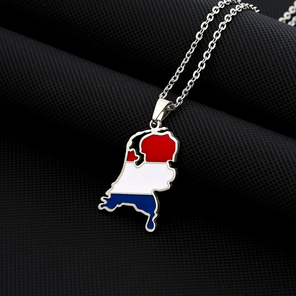 2024 new fashion stainless just vintage Dutch map flag pendant necklace temperament everything collarbone chain birthday anniver