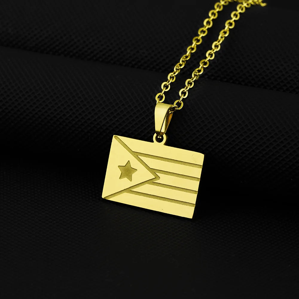 2024 new fashion stainless just wear with love shaped Puerto Rico flag pendant necklace temperament everything collarbone chain