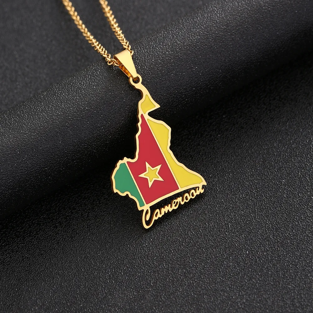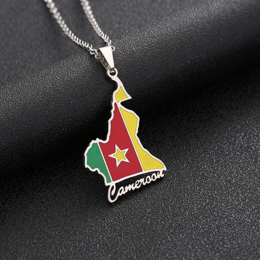 2024 New fashion stainless steel African Cameroon map necklace for men and women geometric ethnic style collarbone chain anniver