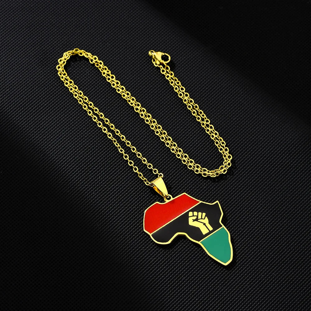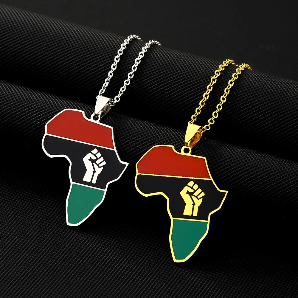 2024 new fashion stainless steel African fist map necklace for women and men couples ethnic style accessory collarbone chain ann