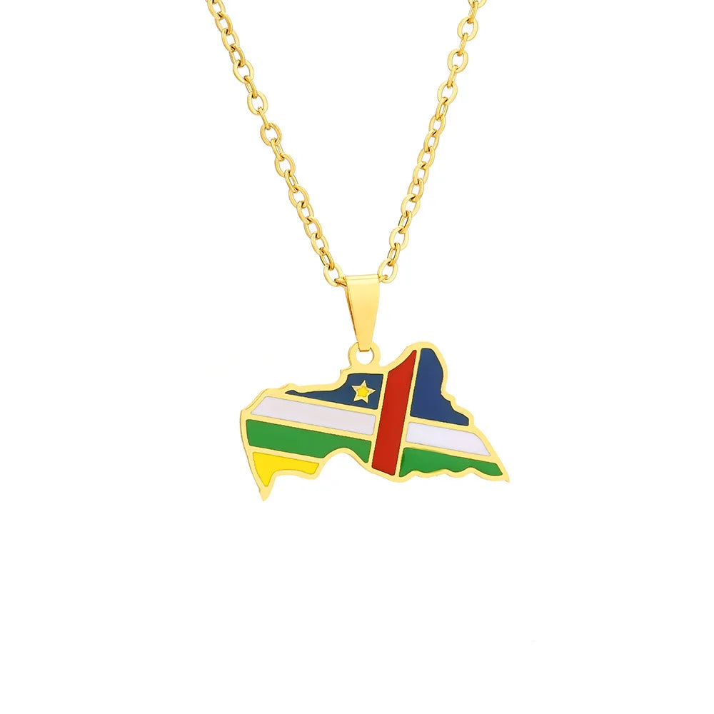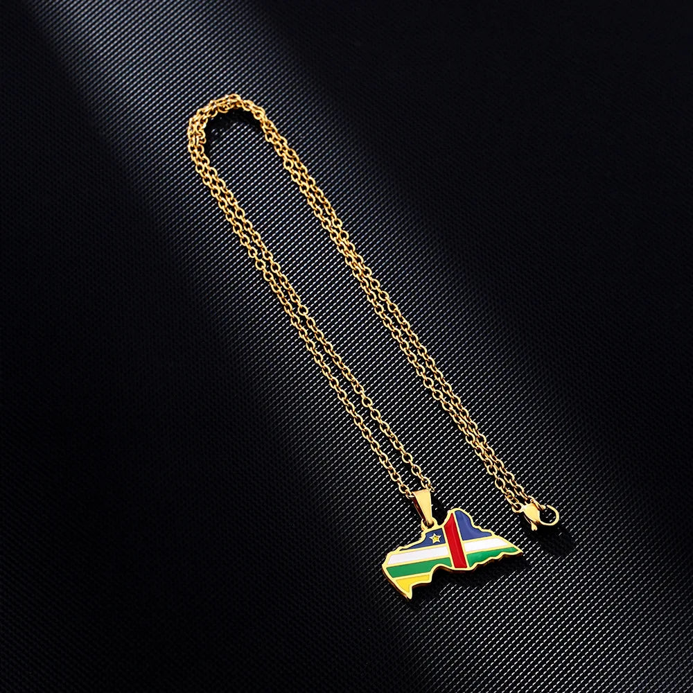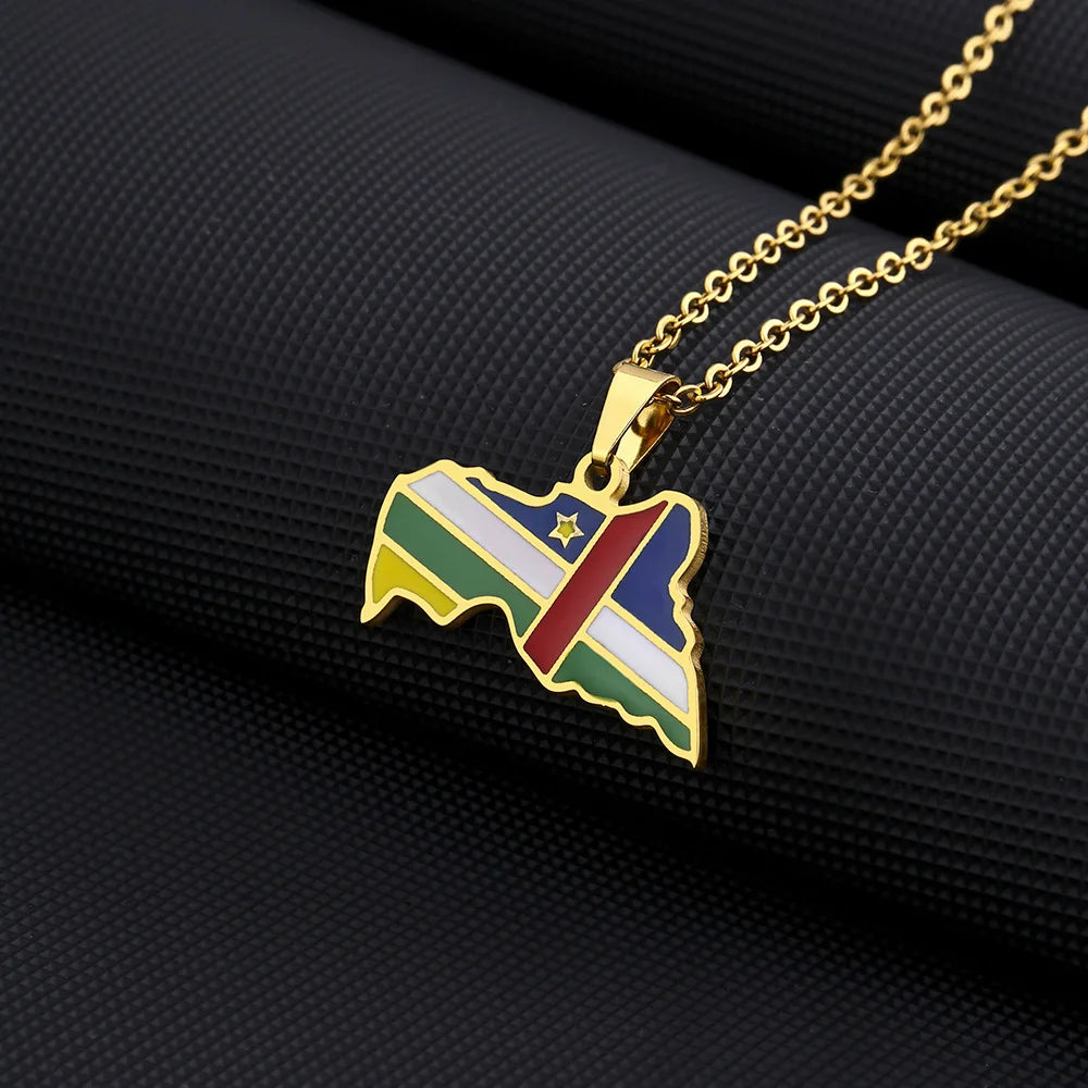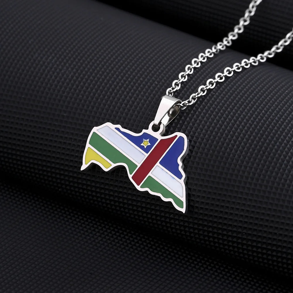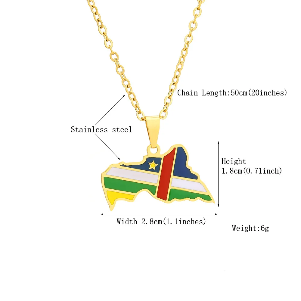 2024 New fashion stainless steel Central African Republic map with flag necklace for women and men couples ethnic style accessor