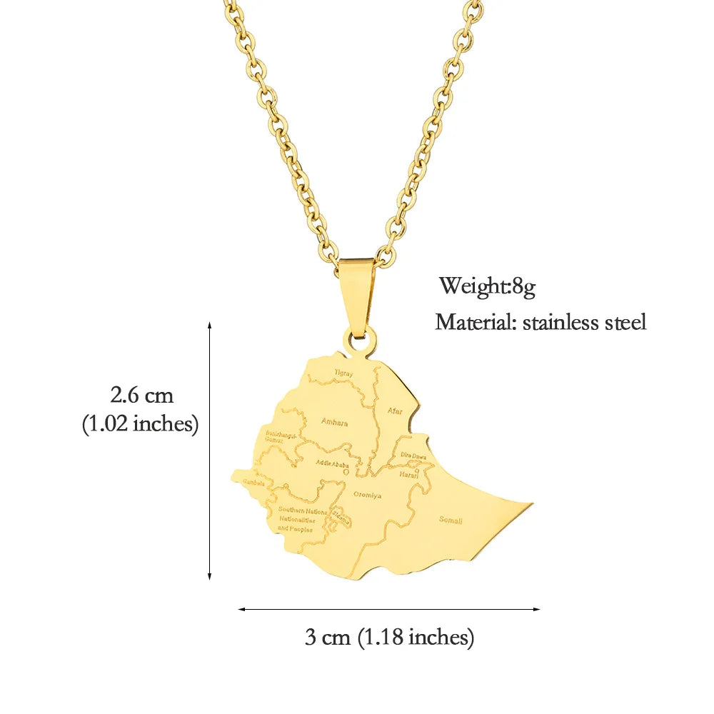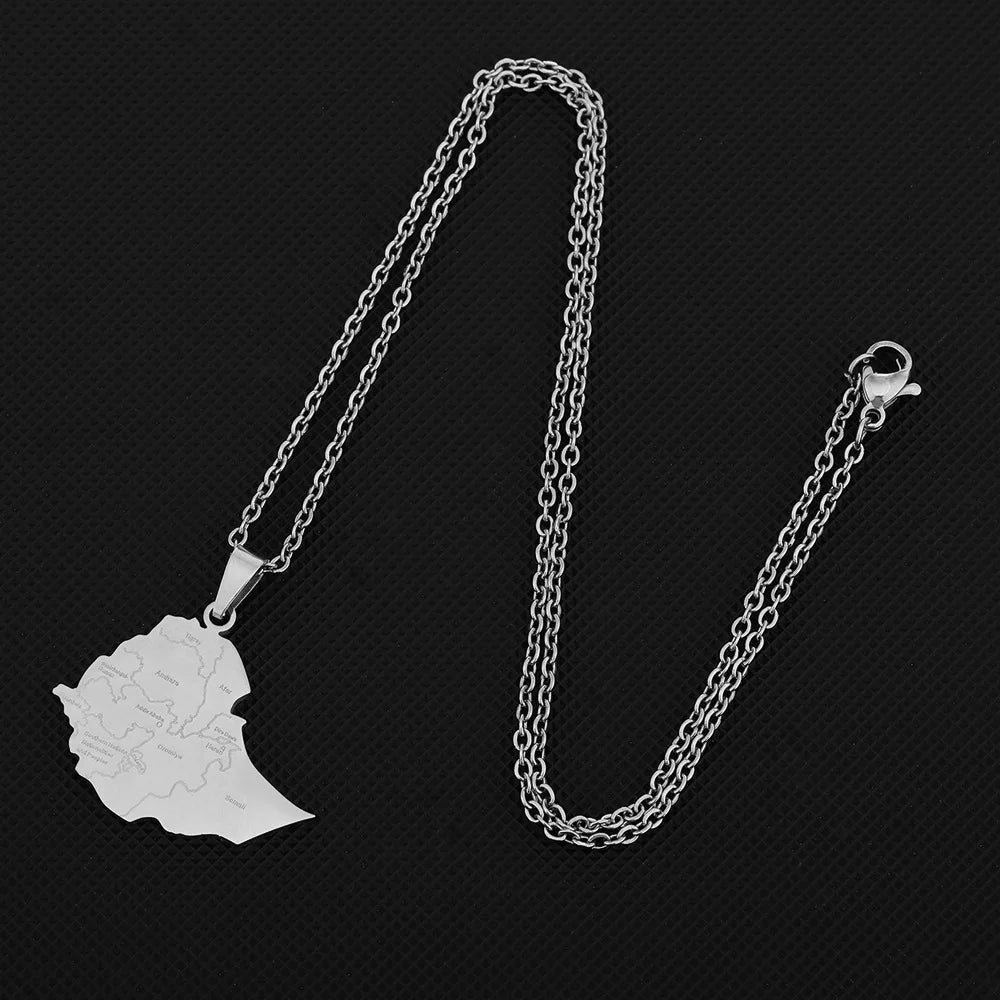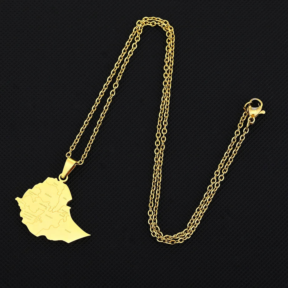 2024 New fashion stainless steel Ethiopia map with city necklace for women and men couples ethnic style accessory collarbone cha