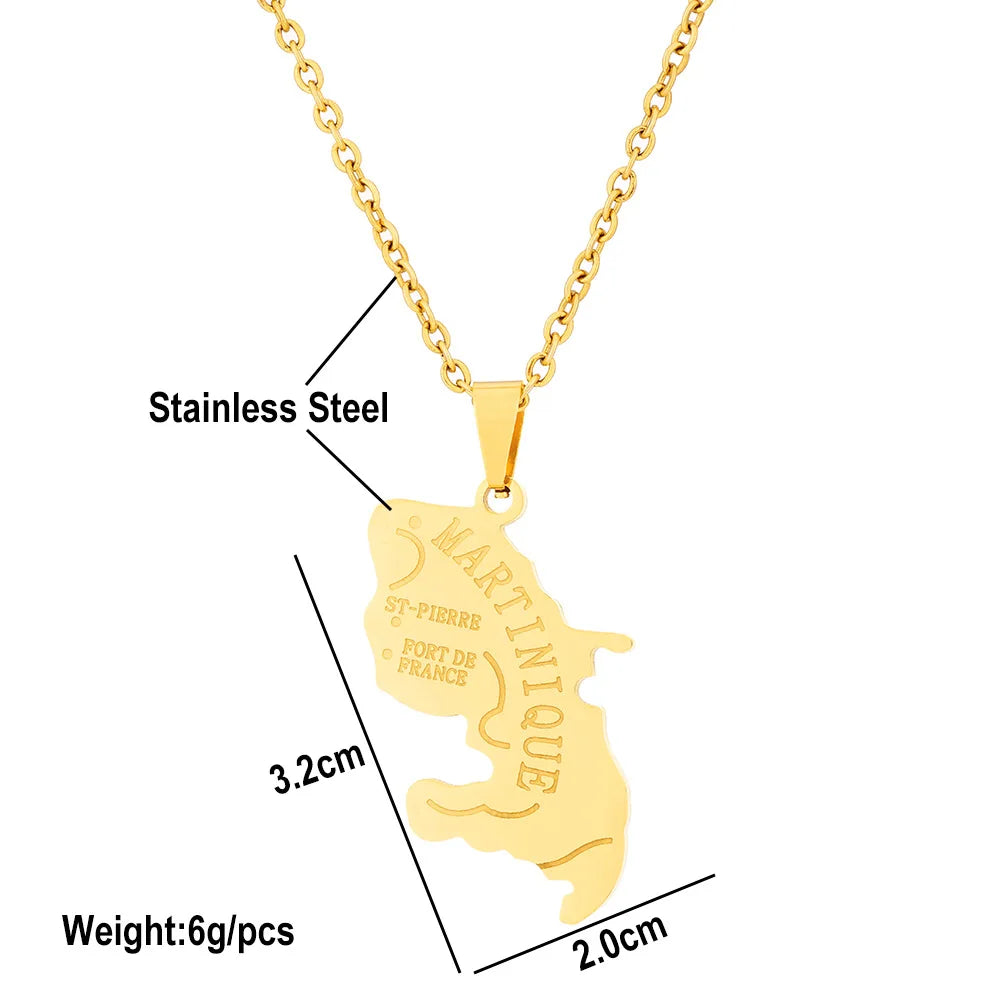 2024 New fashion stainless steel French Martinique map necklace for men and women geometric ethnic style collarbone chain annive