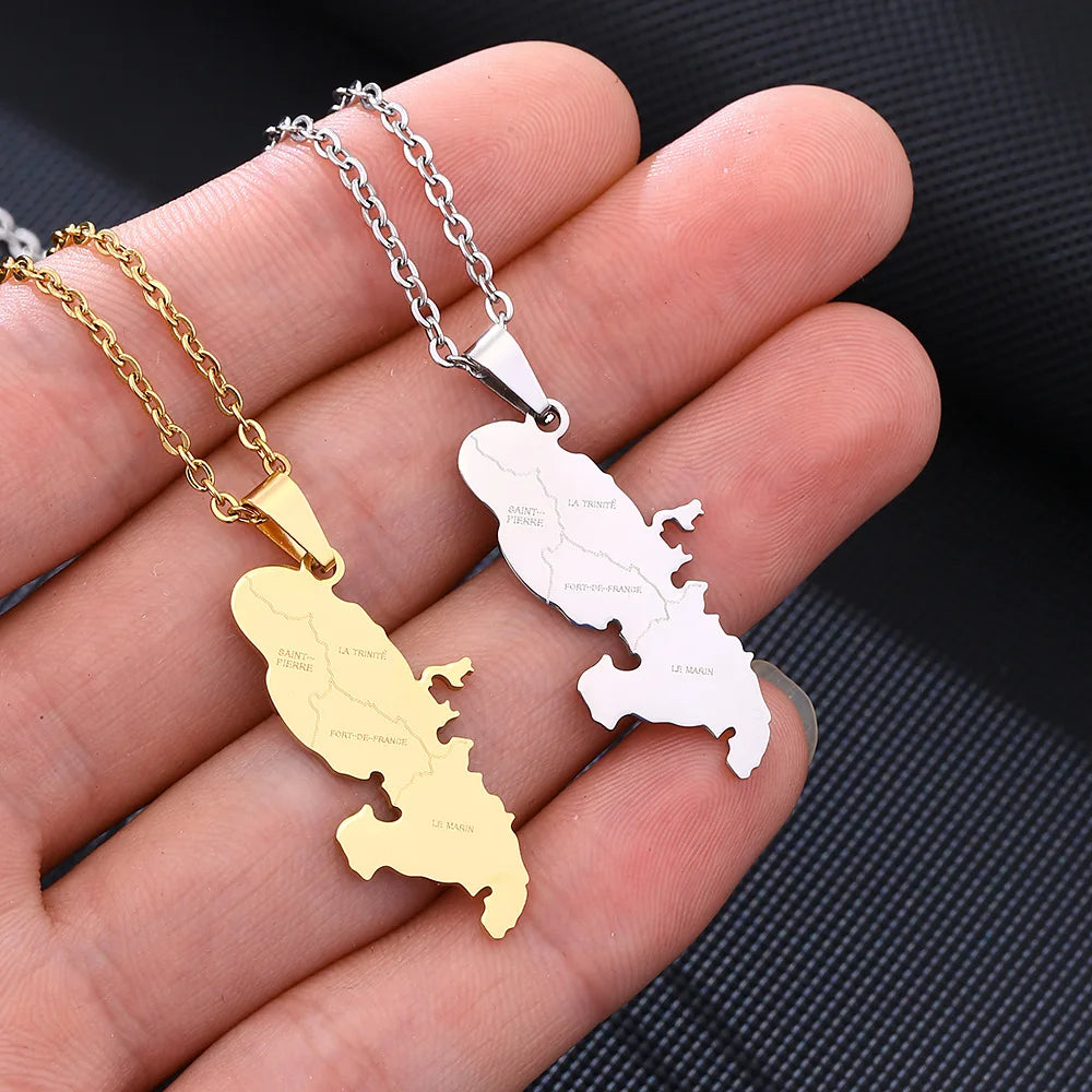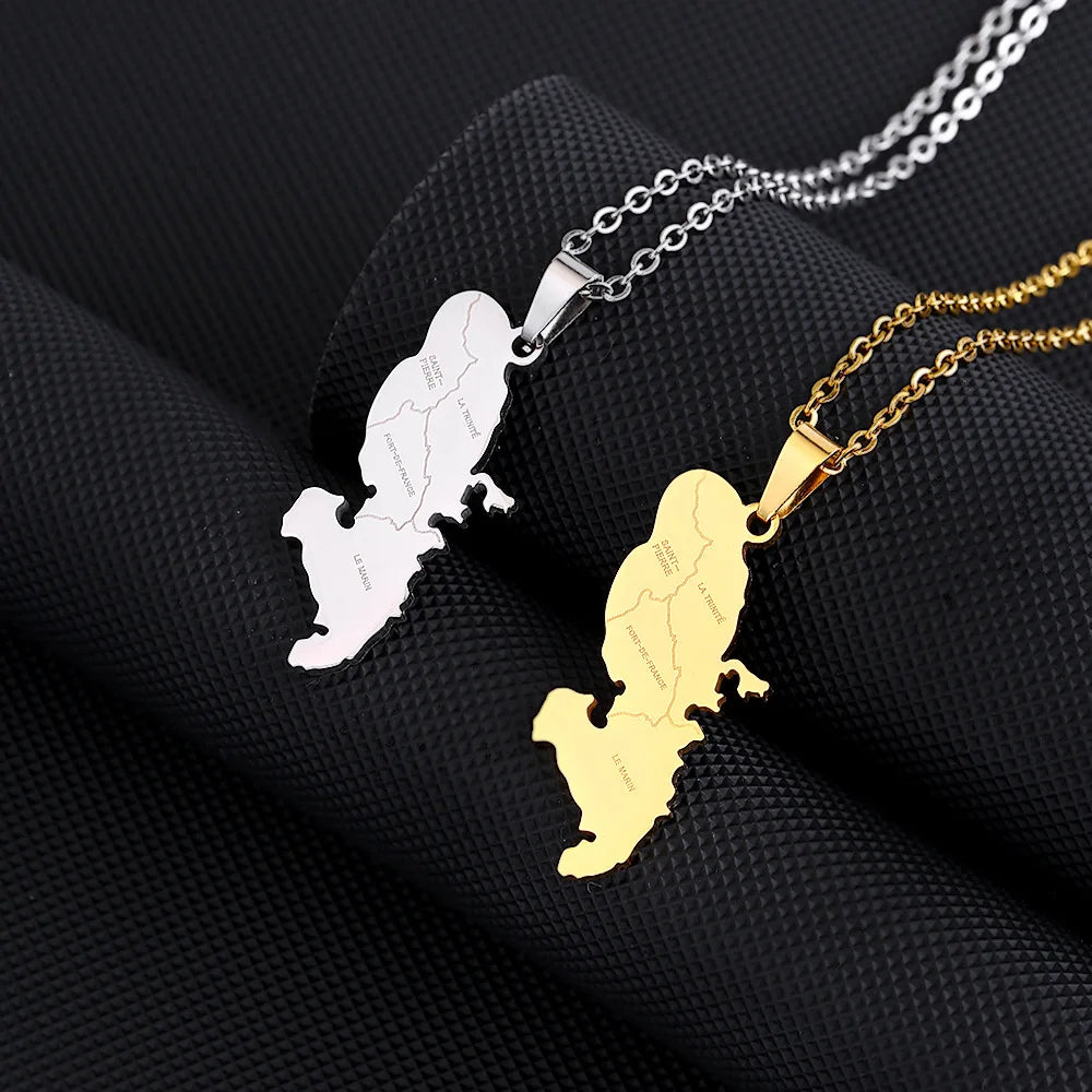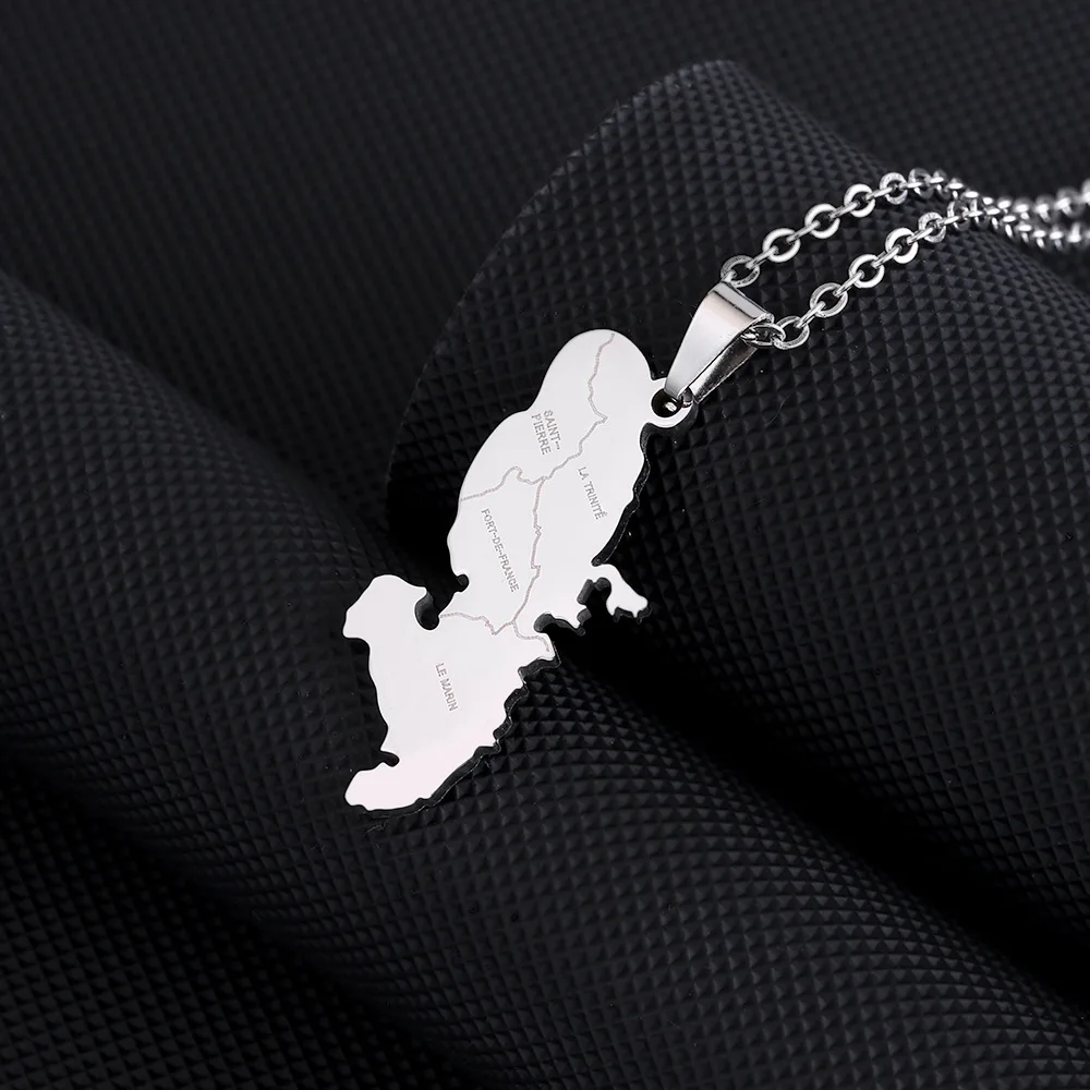 2024 new fashion stainless steel French Martinique map with city pendant necklace temperament everything collarbone chain birthd