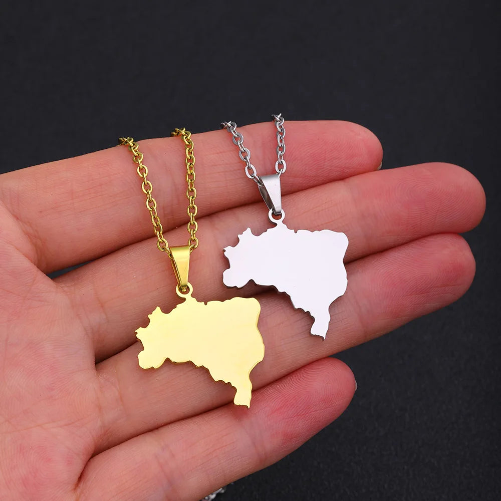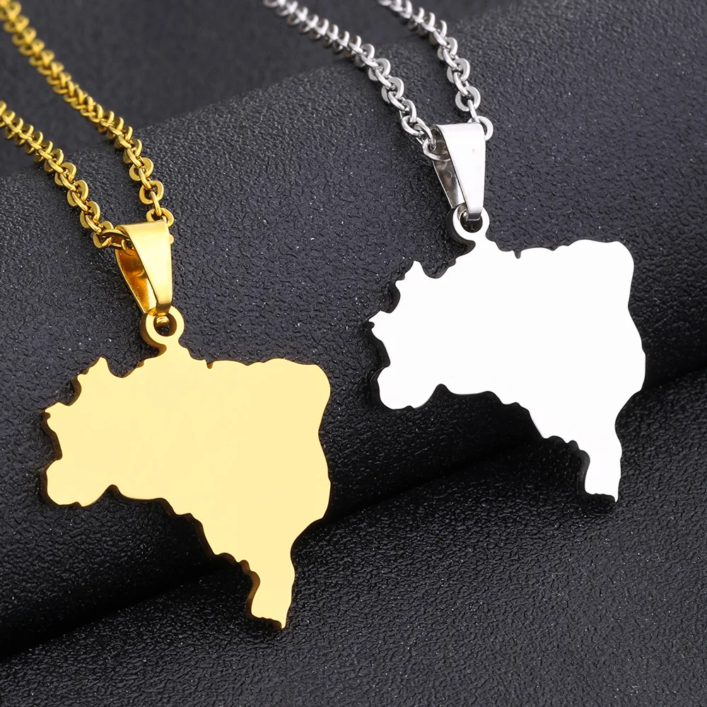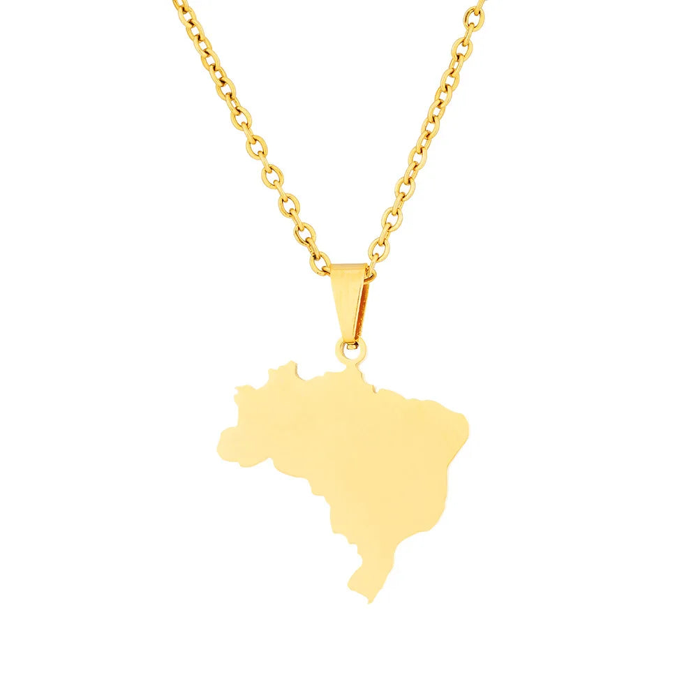 2024 new fashion stainless steel glossy Brazil map pendant necklace temperament everything collarbone chain birthday anniversary