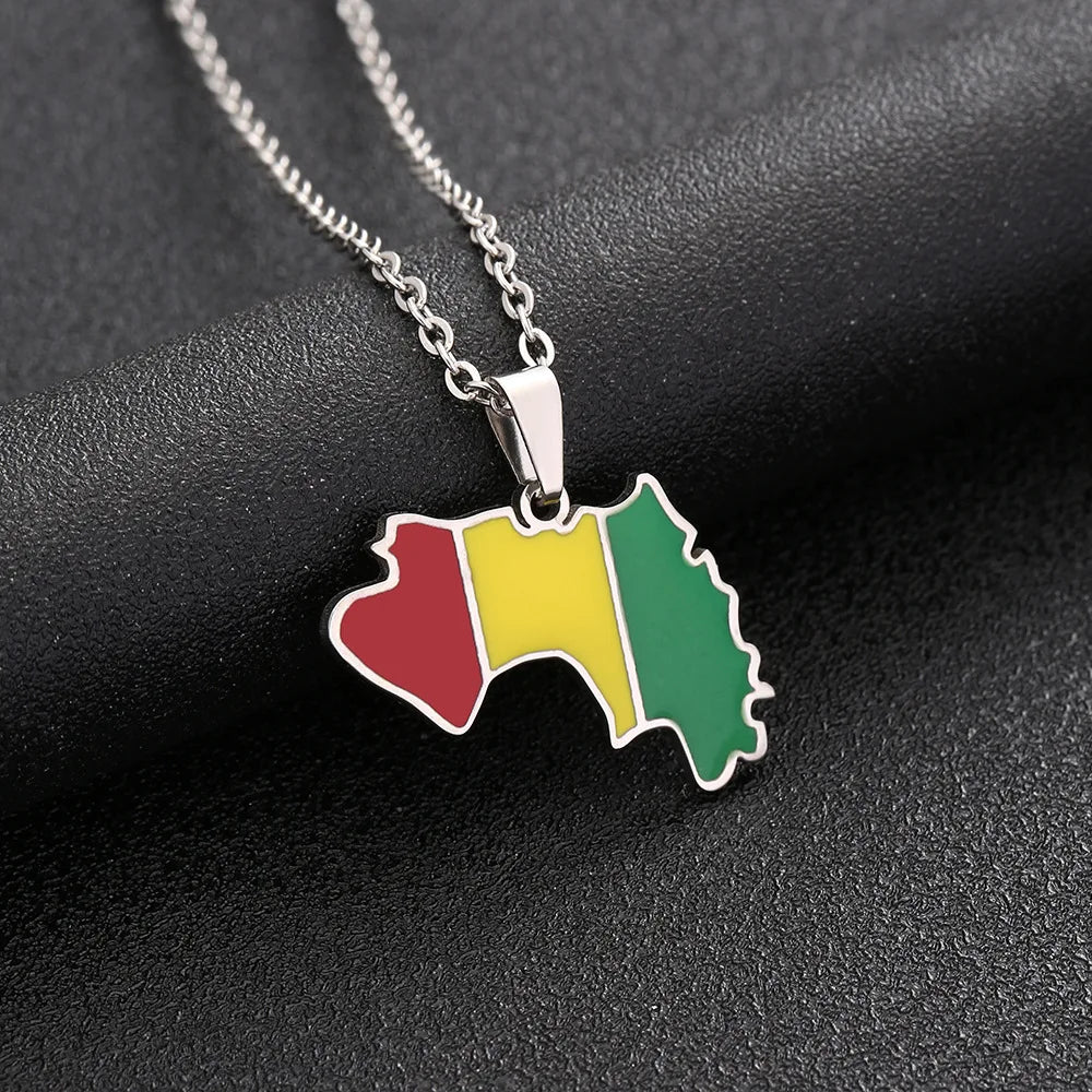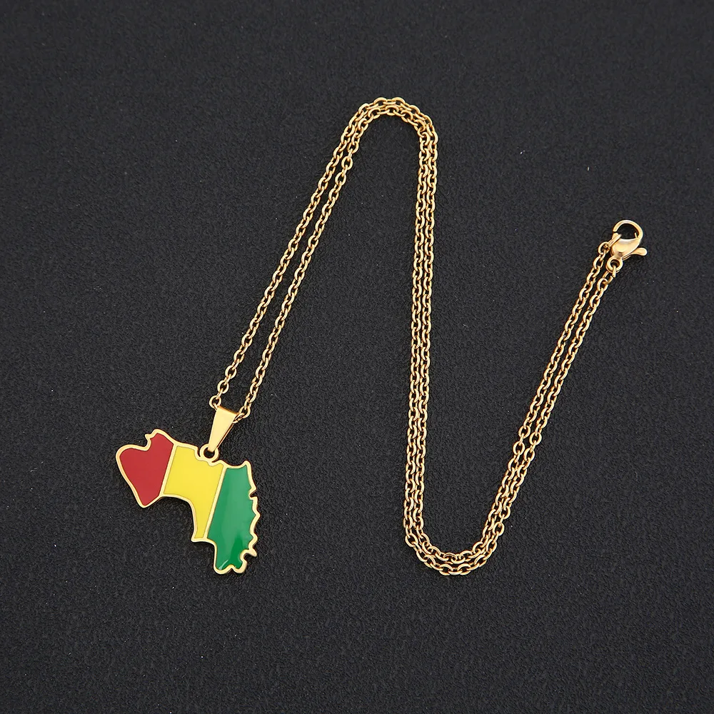 2024 New fashion stainless steel Guinea map necklace for men and women geometric ethnic style collarbone chain anniversary small