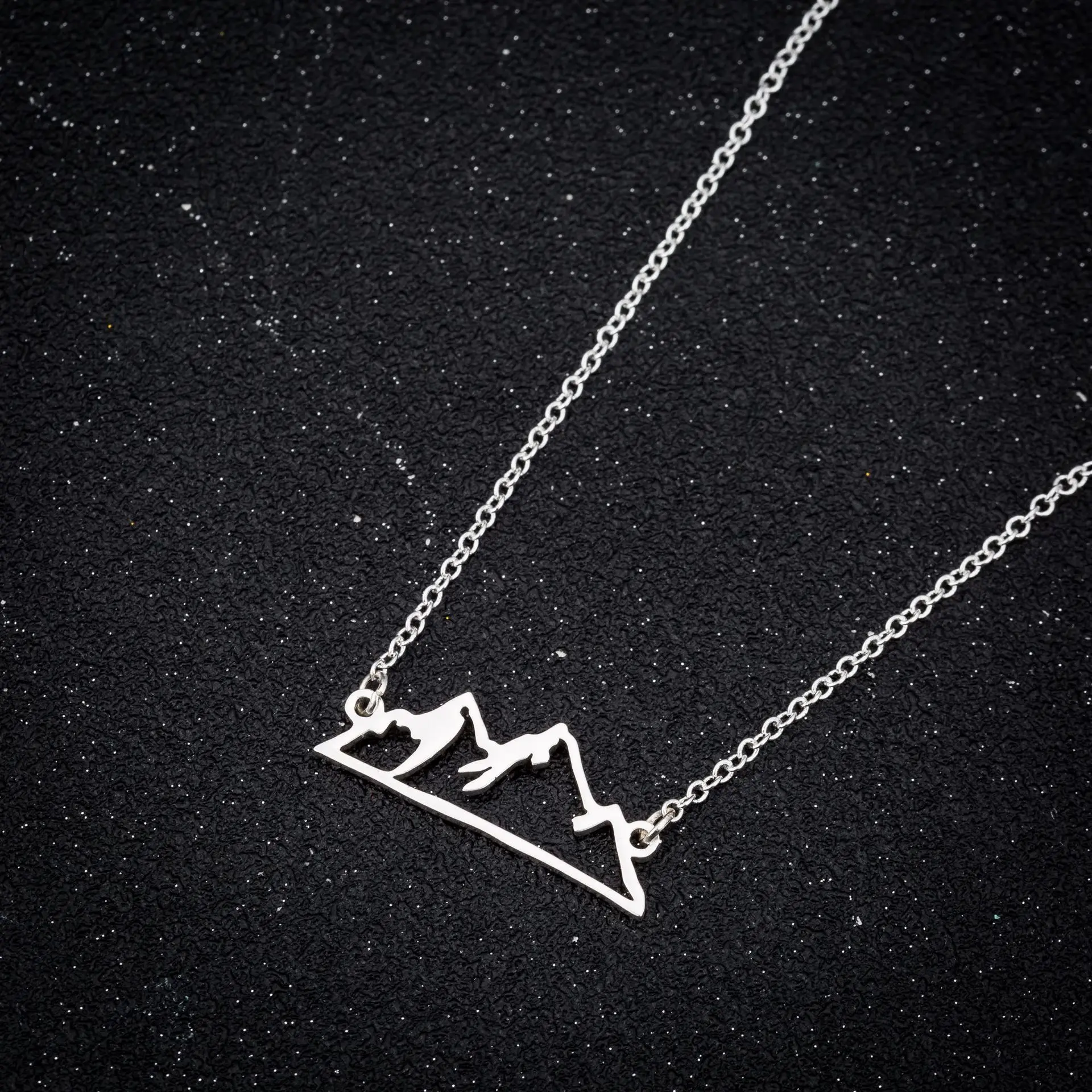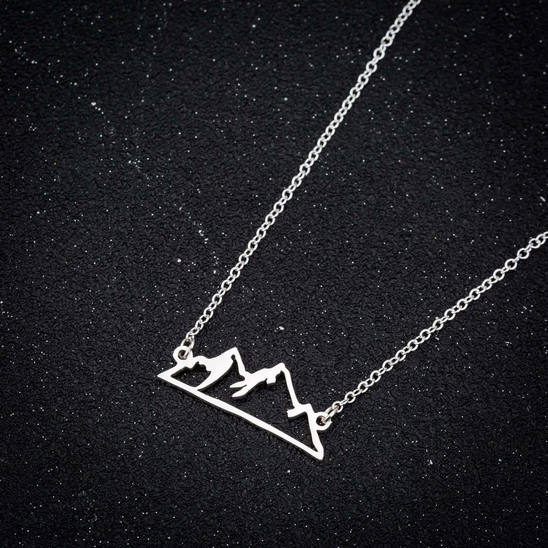 2024 new fashion stainless steel hollow snow mountain mountain pendant necklace temperament with lovely collarbone chain accesso