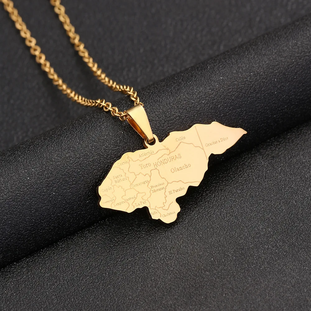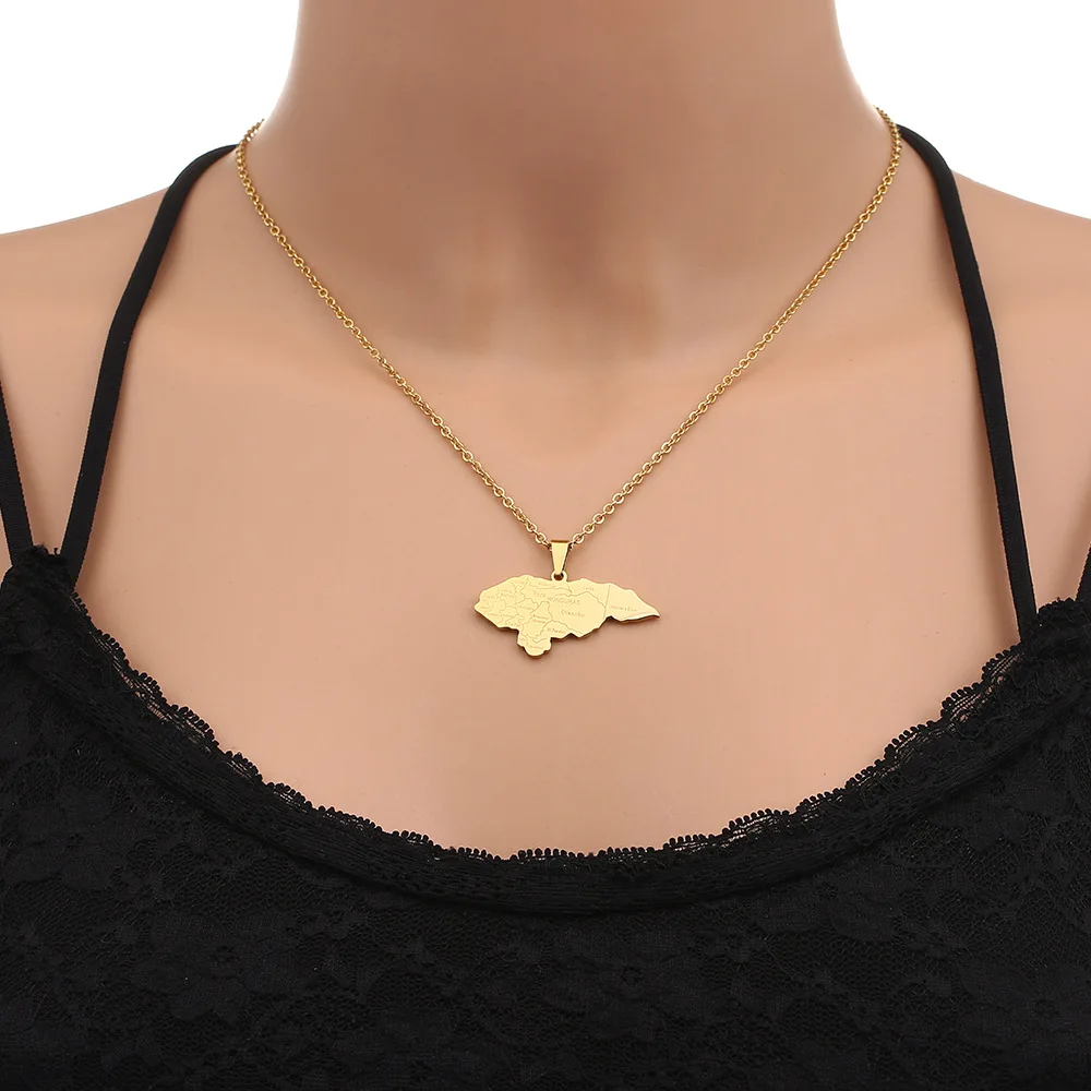 2024 new fashion stainless steel Honduran map with city pendant necklace temperament everything collarbone chain birthday annive