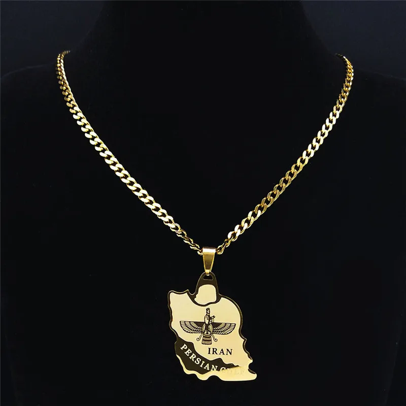 2024 New fashion stainless steel Iran map Ahura necklace Zoroastrian Iran cut Persian Empire collarbone chain accessories access