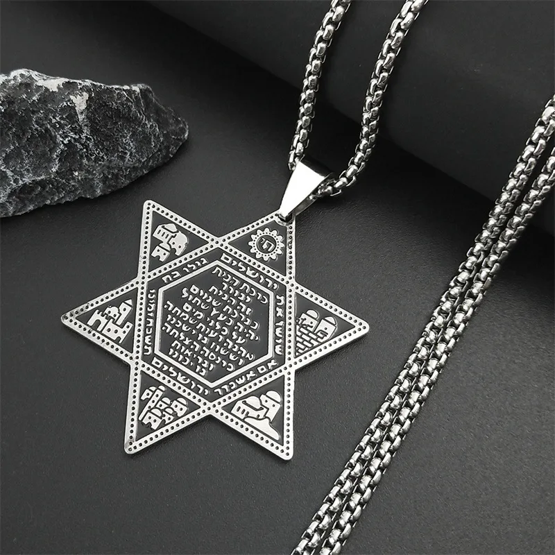2024 New fashion stainless steel Jewish hexagon symbol pendant clavicle chain temperament everything necklace accessories Annive