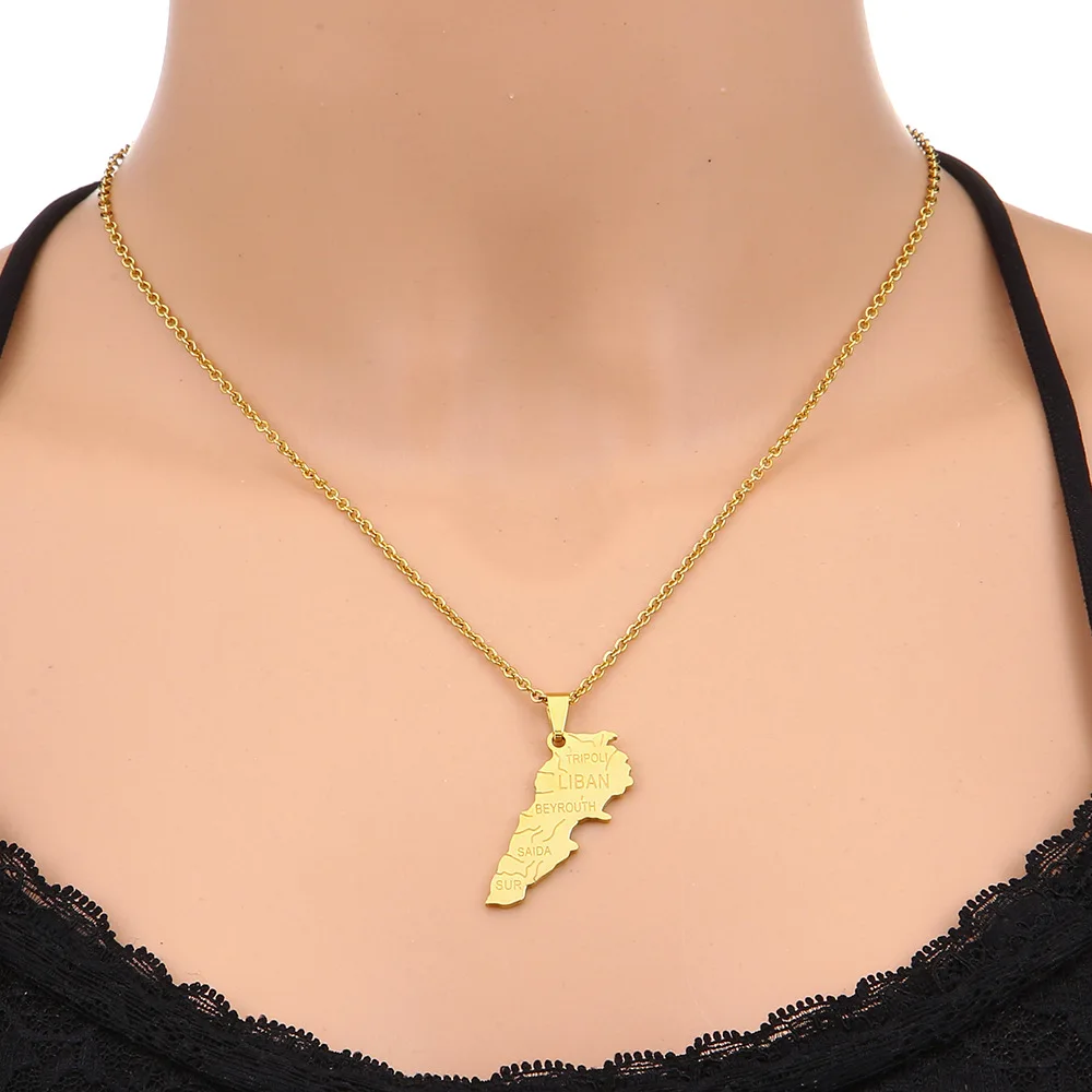 2024 New fashion stainless steel Lebanon map necklace for women and men couples ethnic style accessory collarbone chain annivers