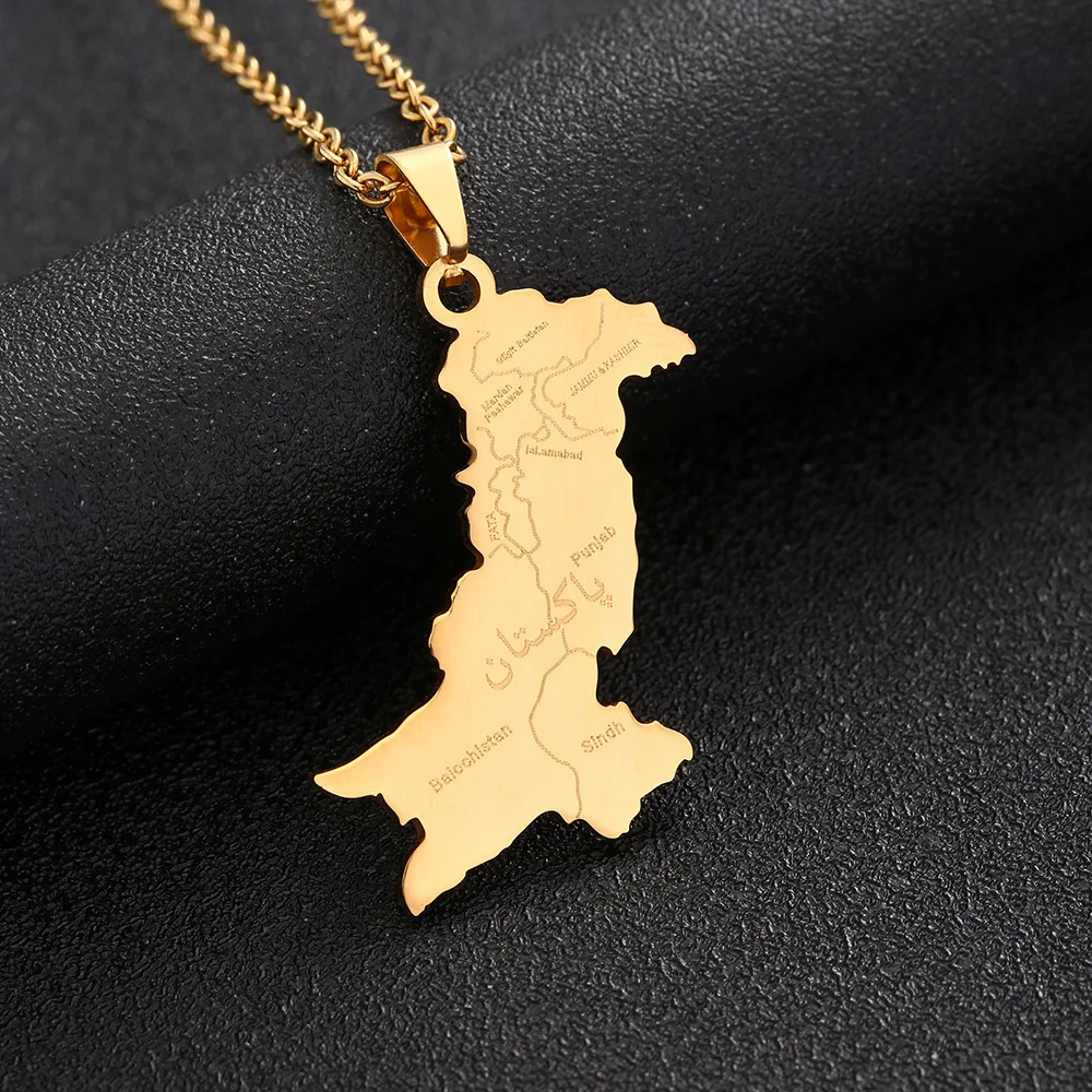 2024 New fashion stainless steel Pakistan map with Urdu pendant necklace for men and women couples fashion sweater chain