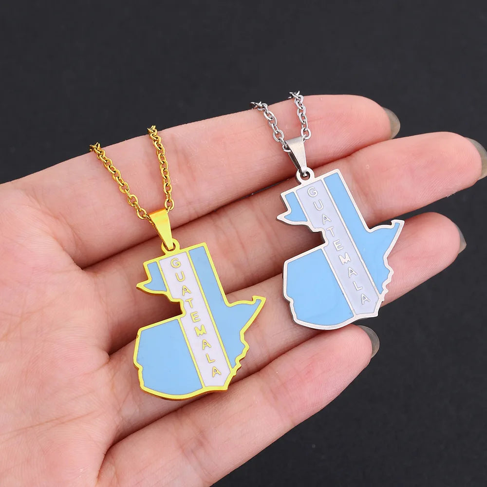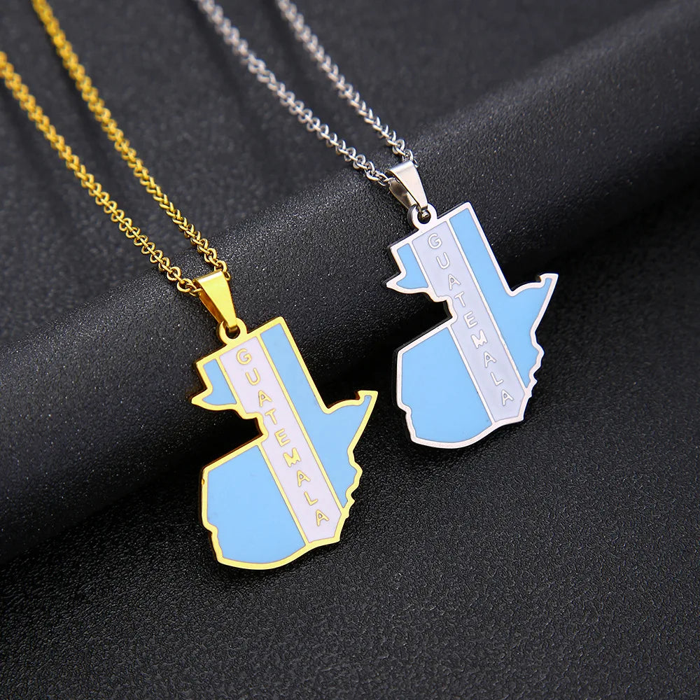 2024 New fashion stainless steel retro dripping Guatemala map necklace for women and men couples ethnic style accessories collar