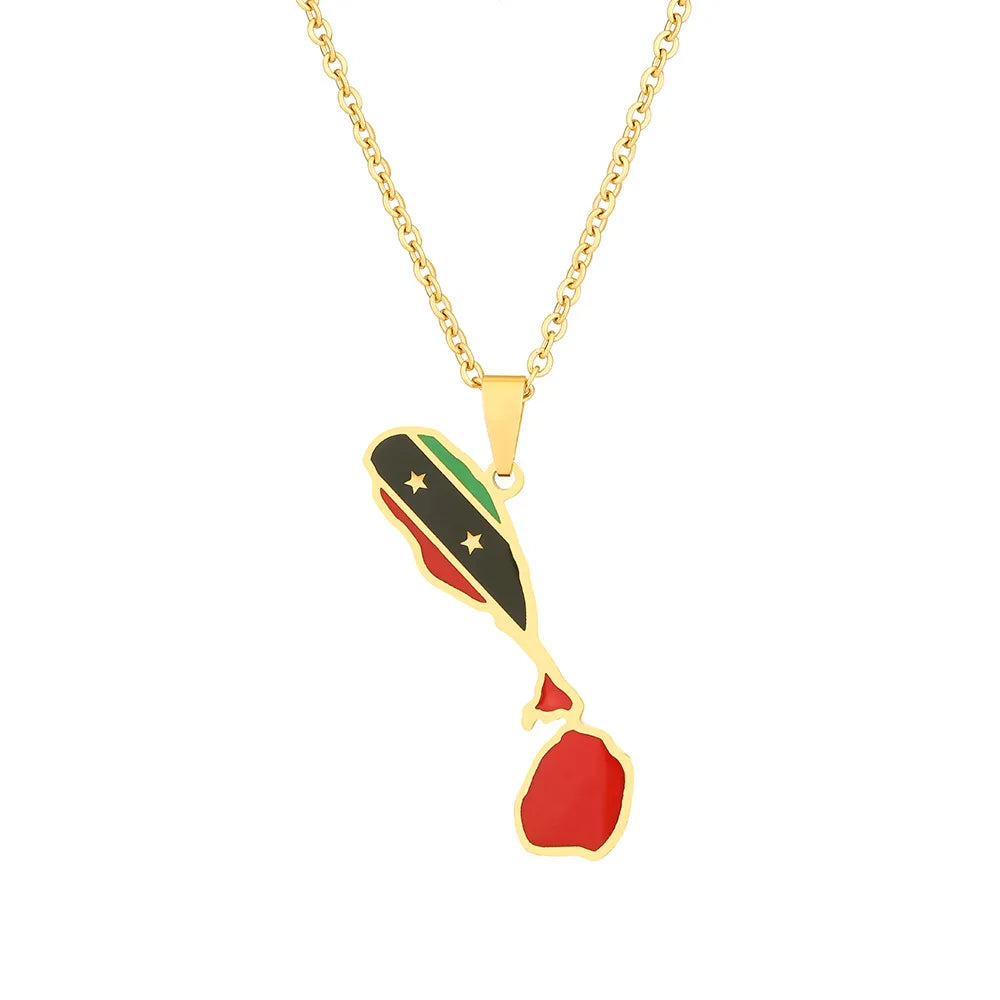 2024 New fashion stainless steel Saint Kitts and Nevis Commonwealth Map Necklace for women and men couples Ethnic style accessor