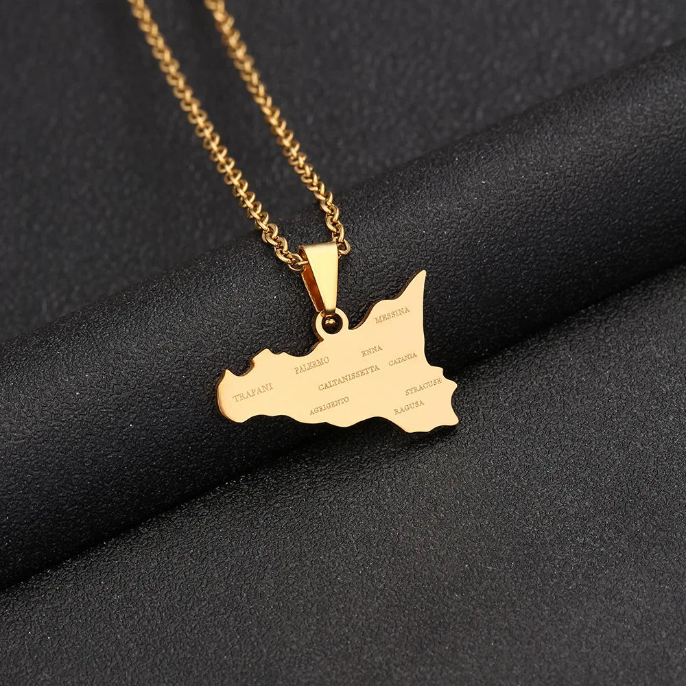 2024 new fashion stainless steel Sicily map and city pendant necklace temperament all collars chain birthday anniversary small g
