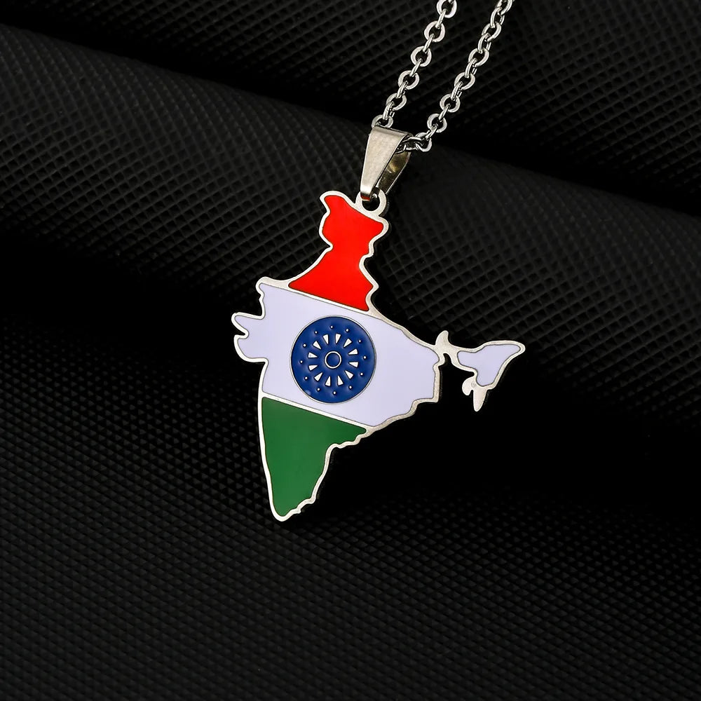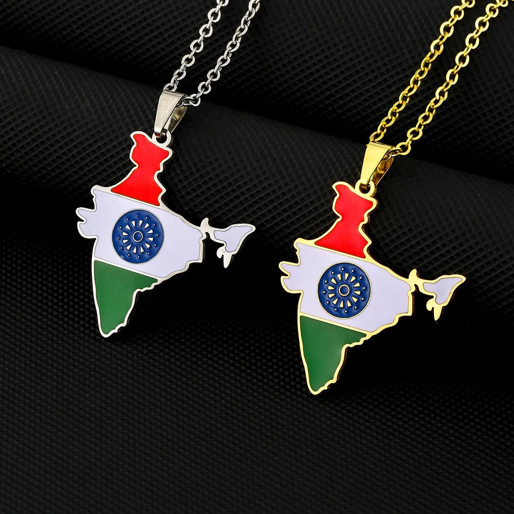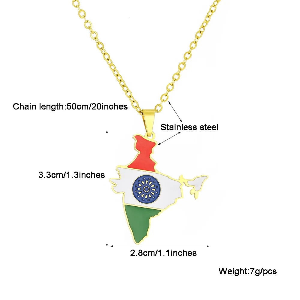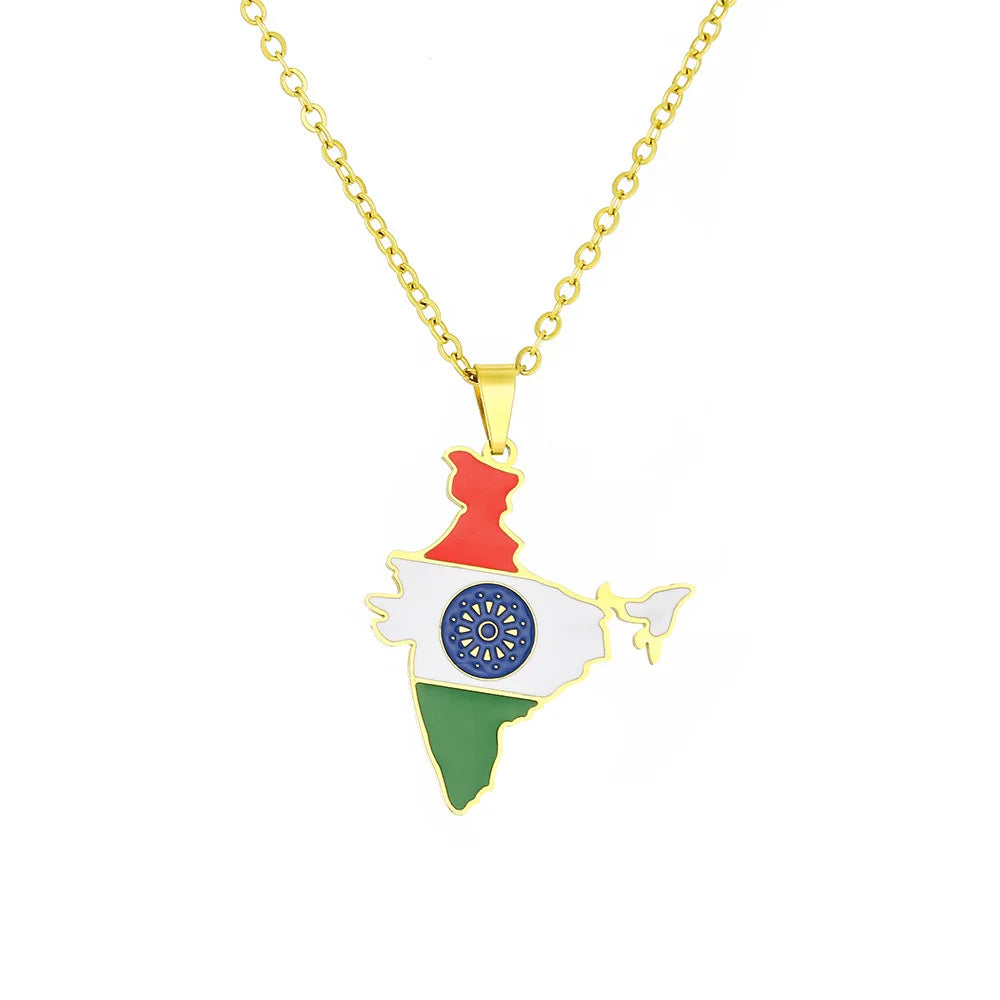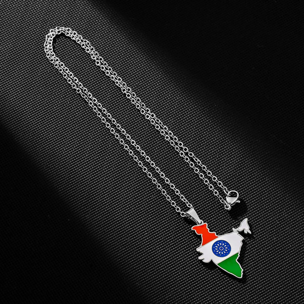 2024 new fashion stainless steel vintage dripping stainless steel Indian flag map pendant necklace temperament everything collar