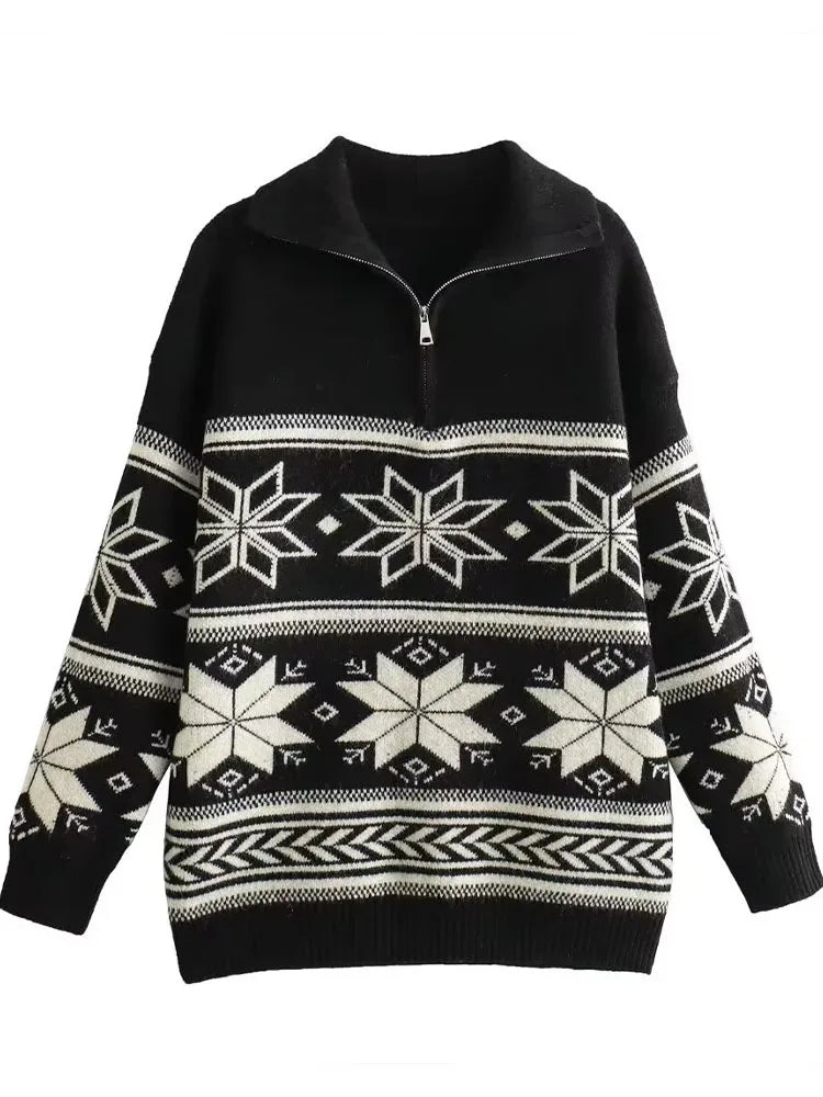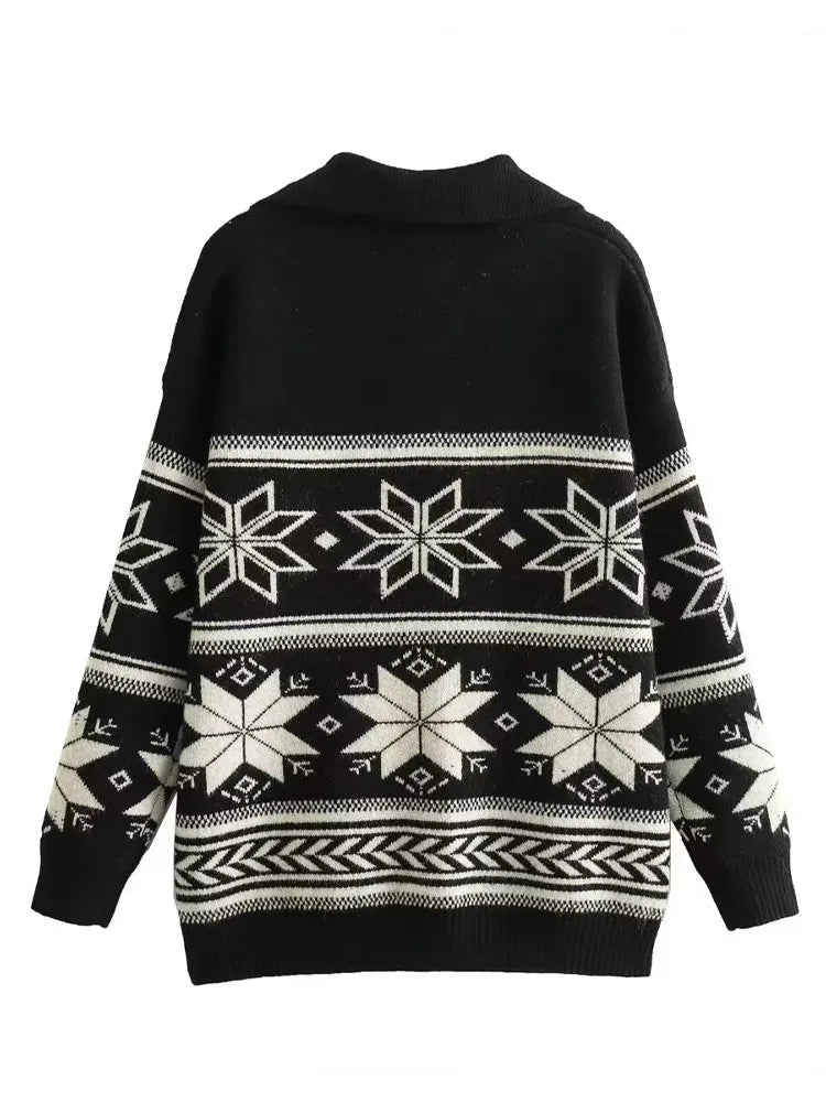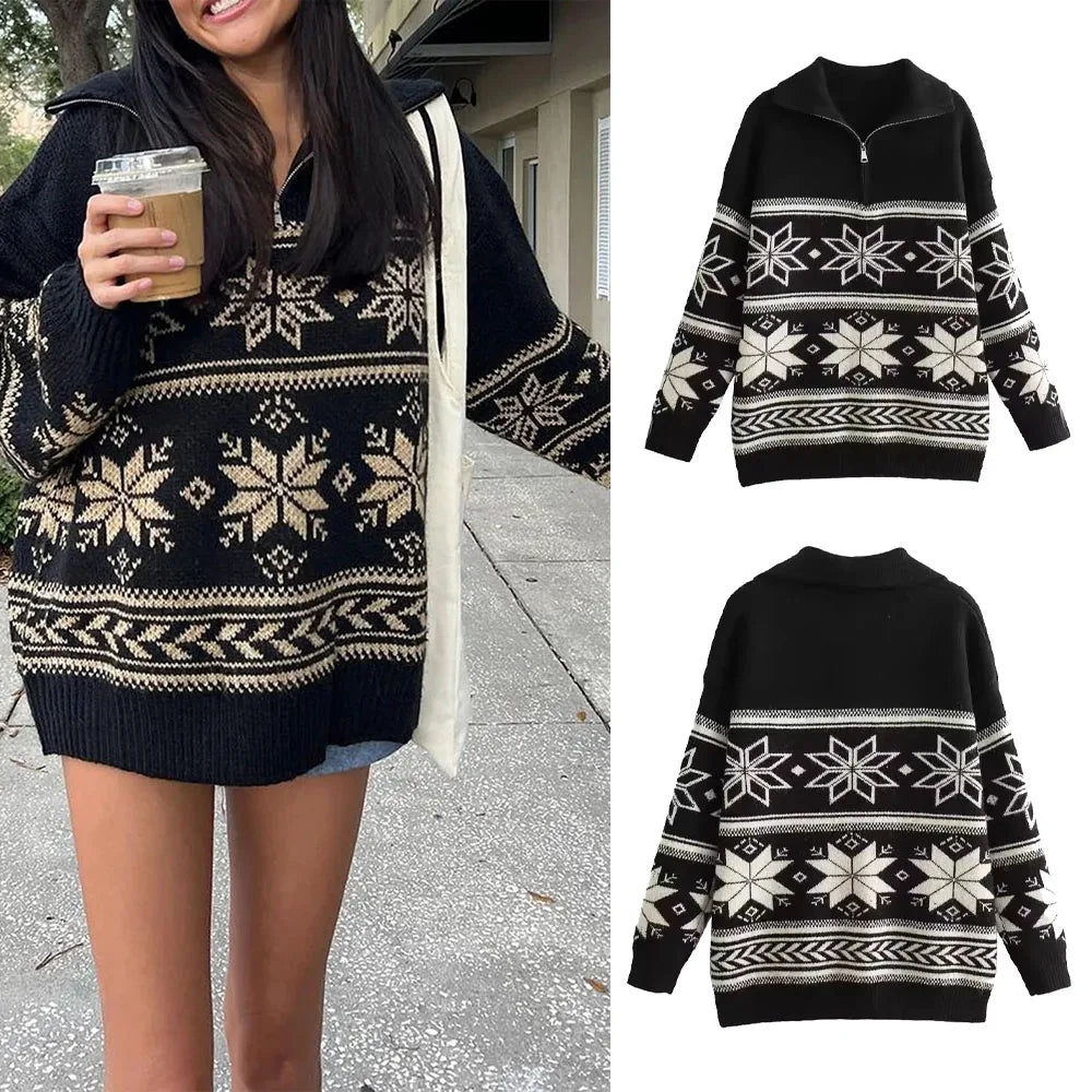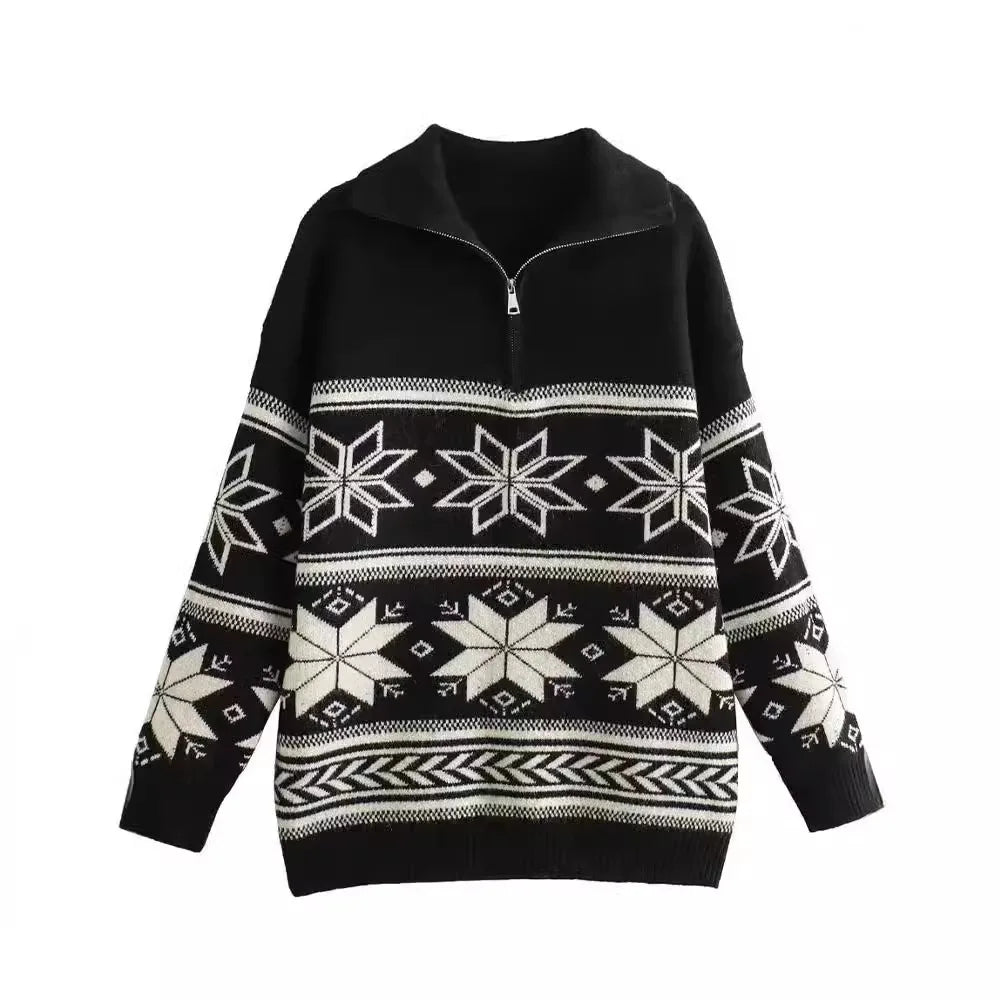 2024 Women Christmas Sweaters Long Sleeve Turn-down Collar Oversized Ugly Holiday Knitted Pullover Sweater