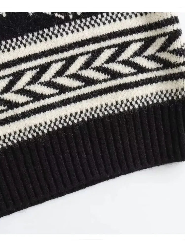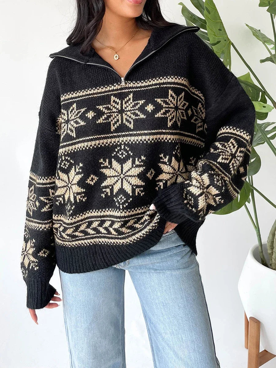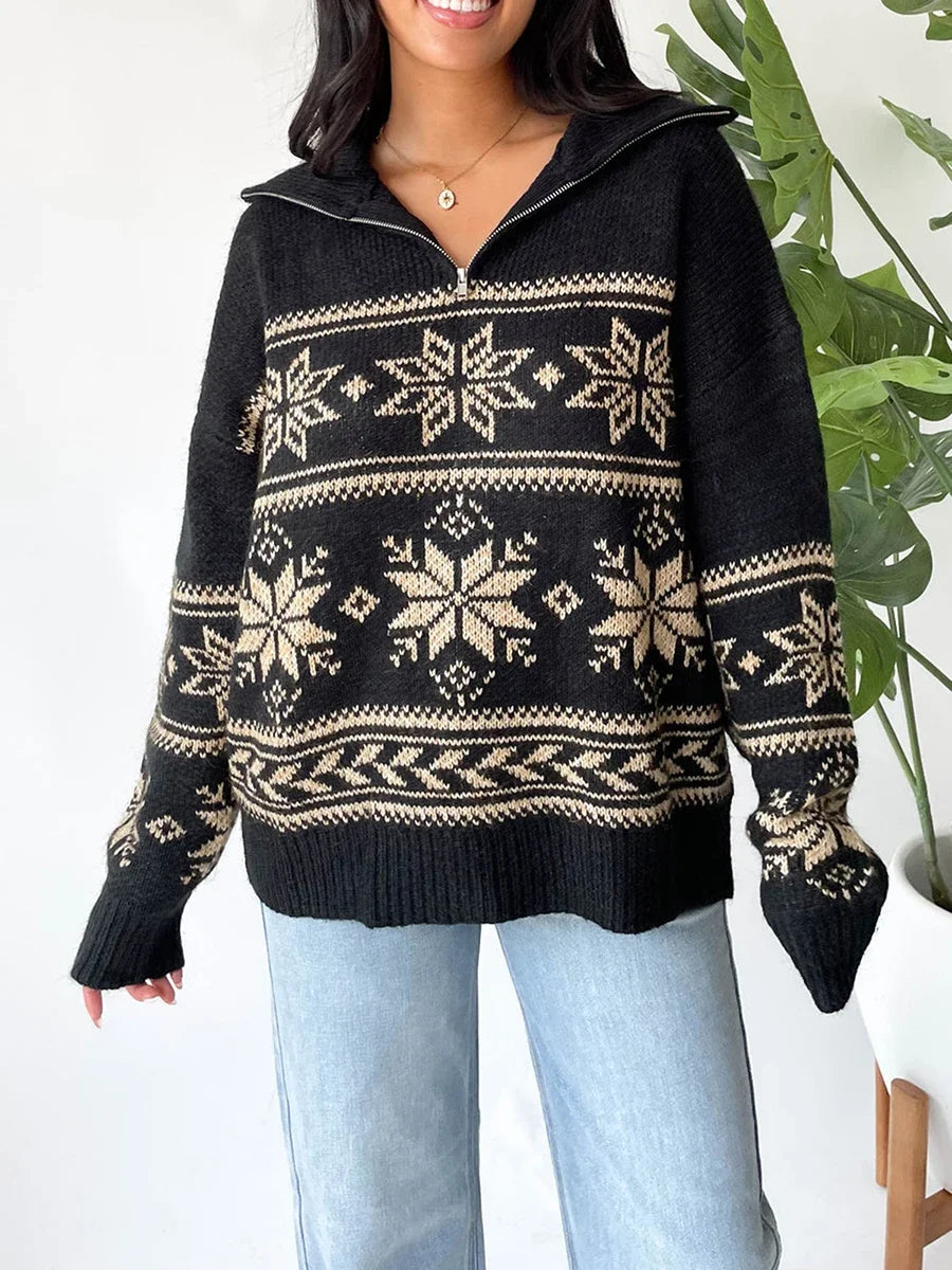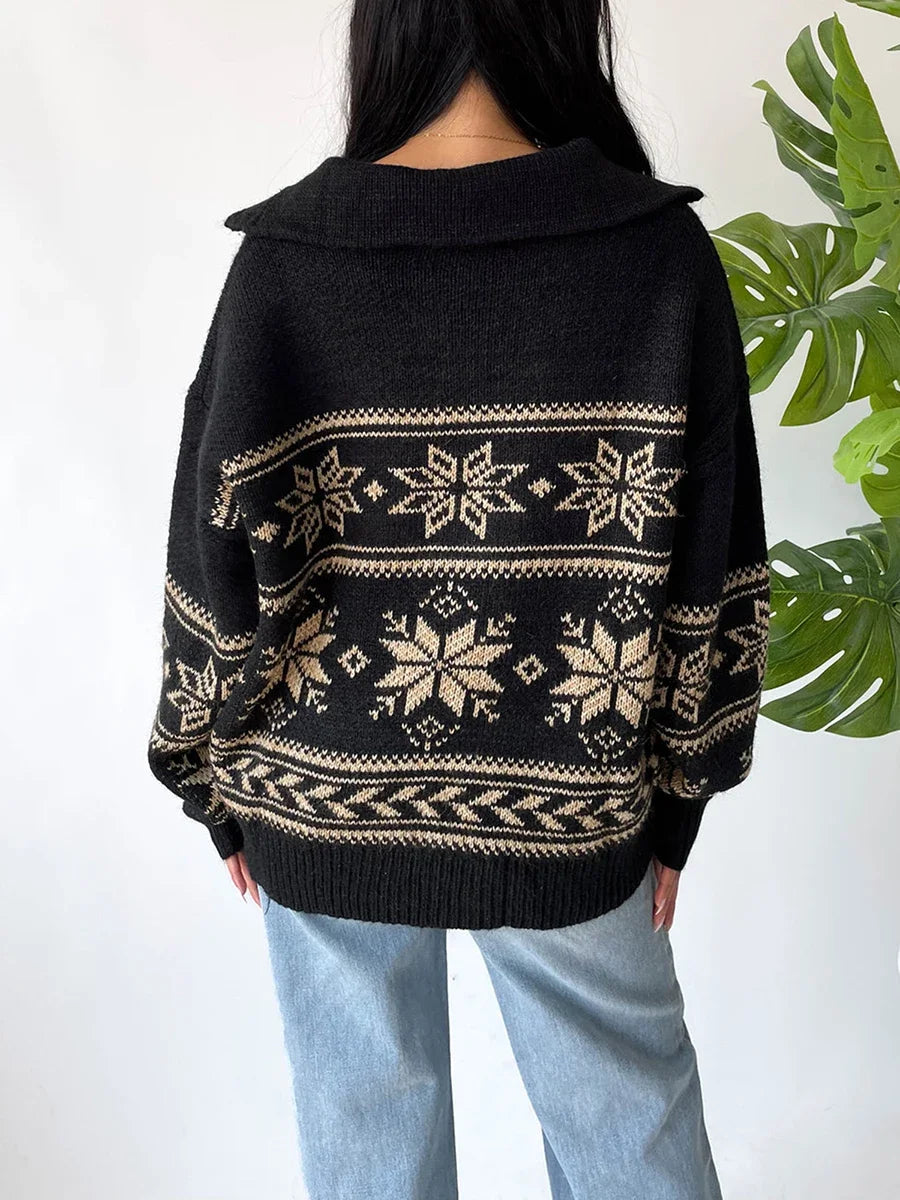 2024 Women Christmas Sweaters Long Sleeve Turn-down Collar Oversized Ugly Holiday Knitted Pullover Sweater