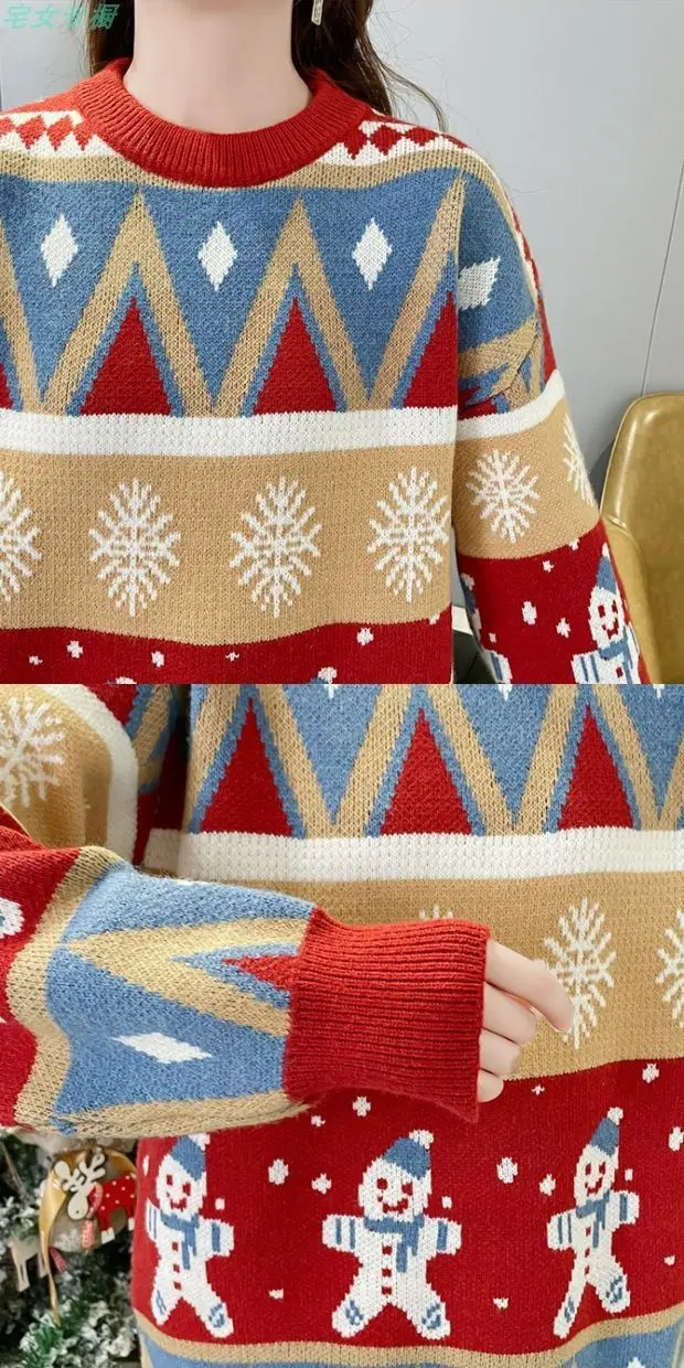 2025 Autumn Winter New Loose Oversized Sweater Women Christmas Snowflake Knitted Longline Thickened Pullover