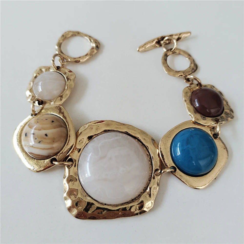 2025 New Indian Ethnic Vintage Bracelet Women Fashion Boho Statement Charm Metal Hollow Links Resin Stone Bracelets Jewelry