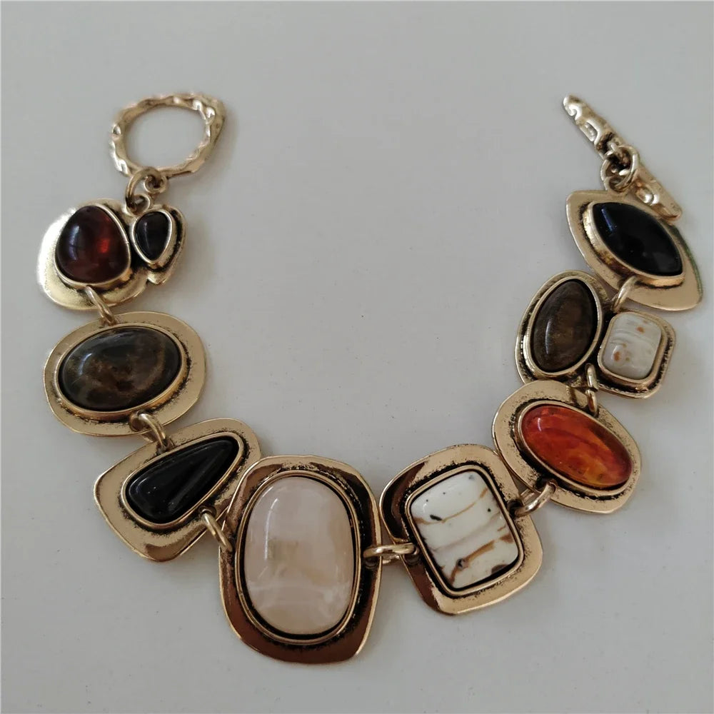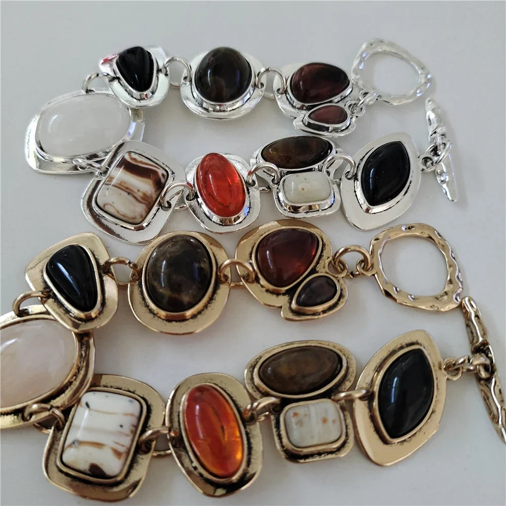 2025 New Indian Vintage Statement Resin Bracelets Women Boho Ethnic Gold Silver Plated Metal Links Charm Bracelets Jewelry