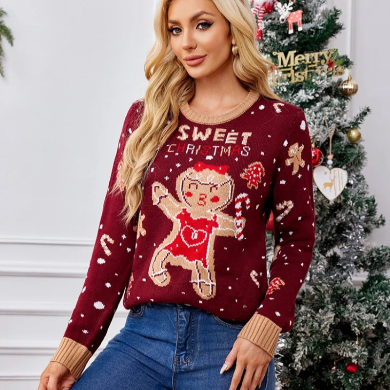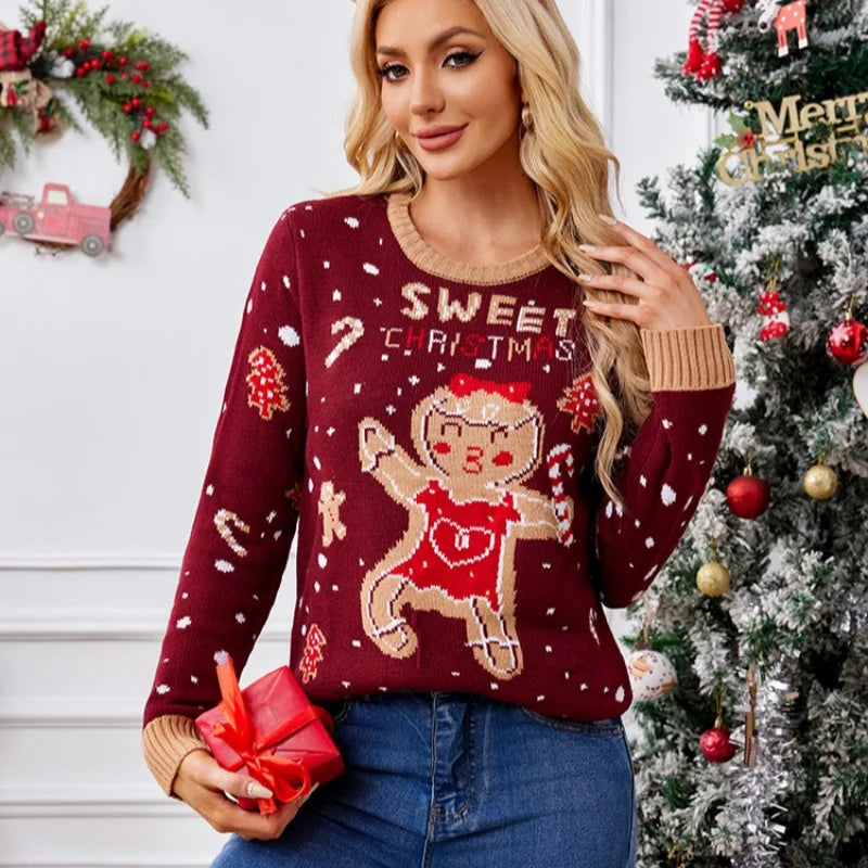 2025 New Year's Clothes Women's Christmas Sweater Cute Soft Knitwear Full Sleeve Casual Loose Xmas Outfit Jumpers Femme Pullover